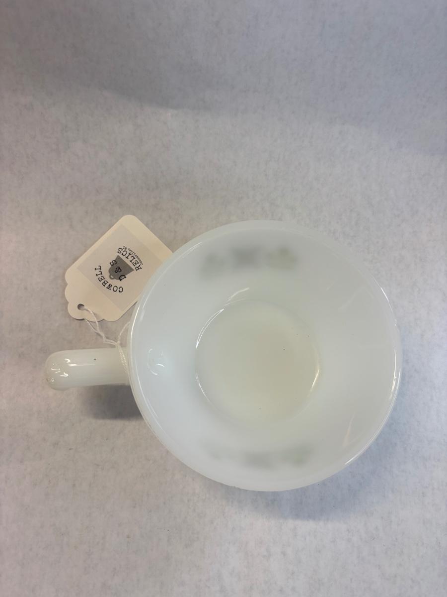 Anchor hocking firing soup bowl with handle. Meadow green