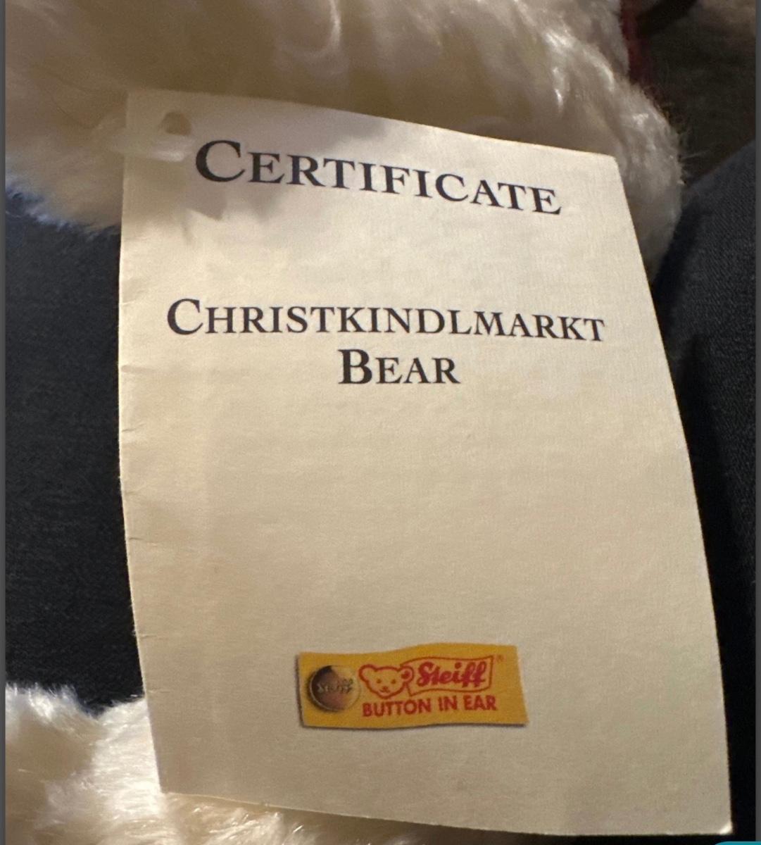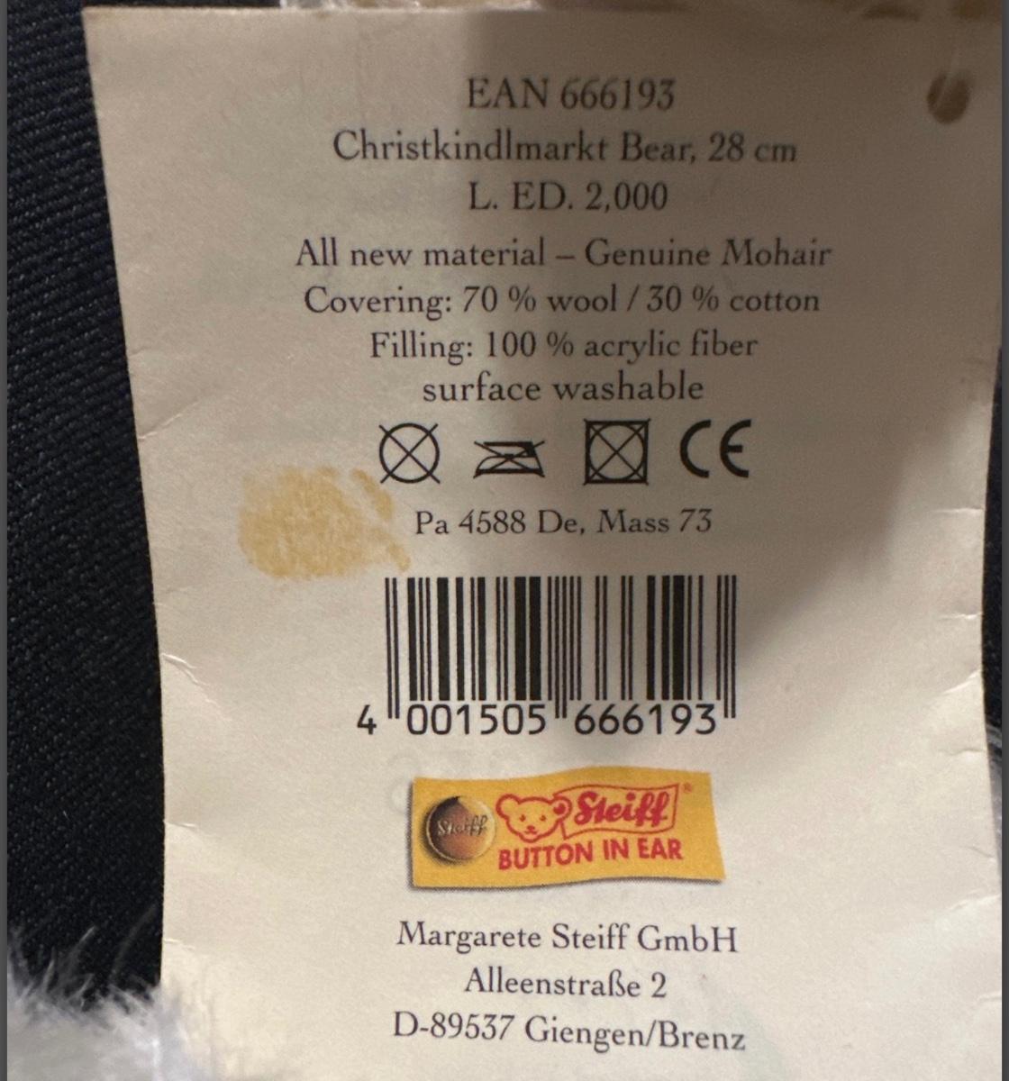 Steiff Bear stands 11 inches tall and is made of low hair limited addition number 256/2000 comes with a COA no box