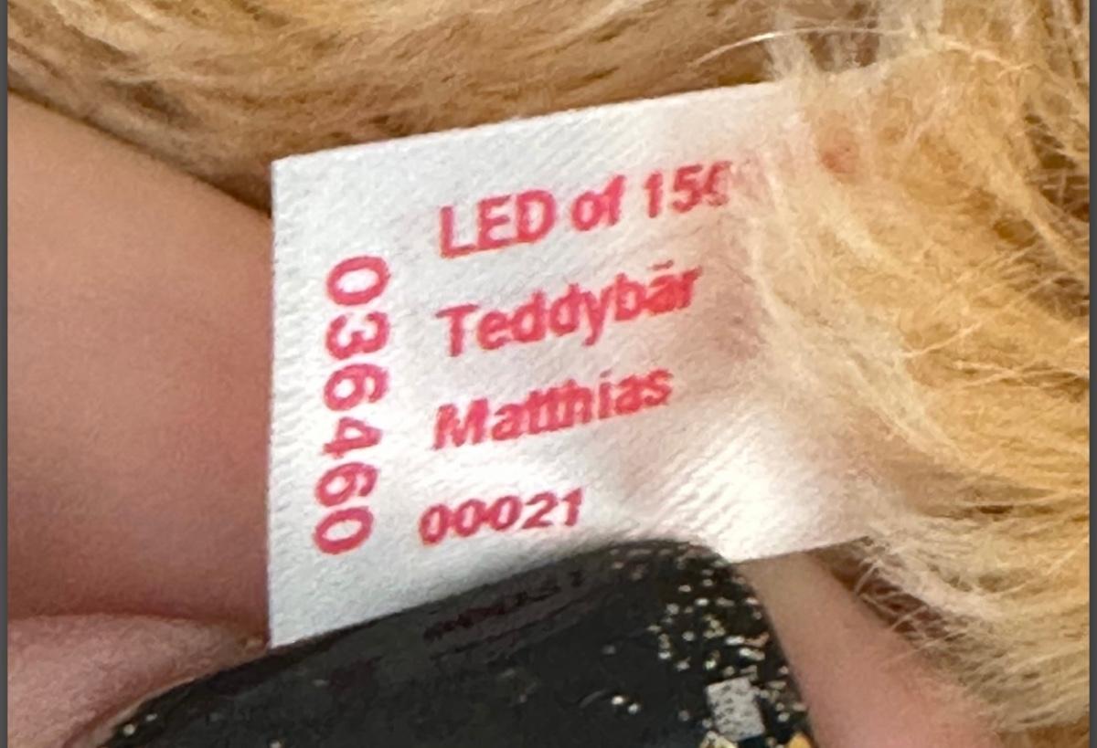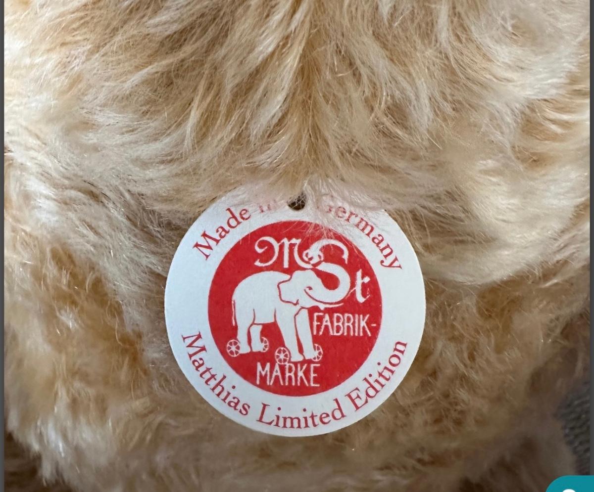 Matthias is 15 inches tall made of mohair extremely low limited edition number 21/1500. Comes with COA and a box.