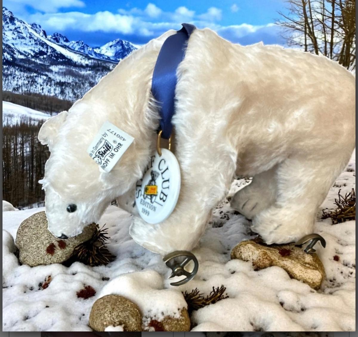 This polar bear is made of mohair and stands 8” tall. # 2582. No COA or box