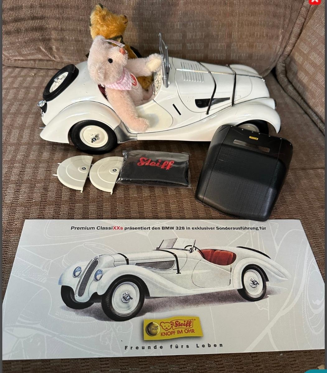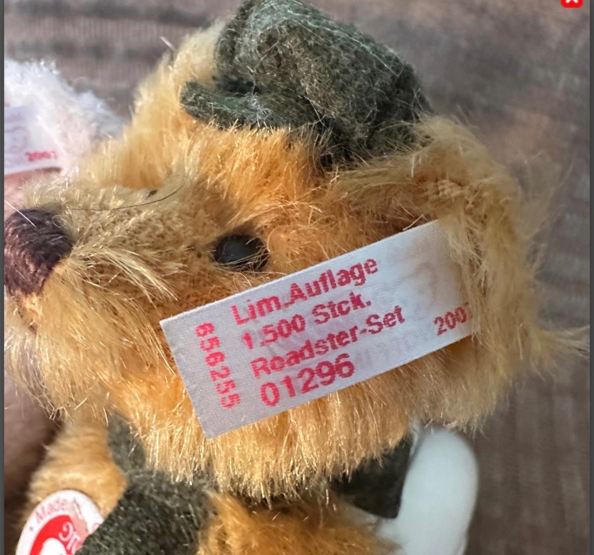 Steif Roadster is made of metal, Bears are made of mohair in our approximately 4 inches tall. Limited addition number 1296/1500. Comes with COA and box.