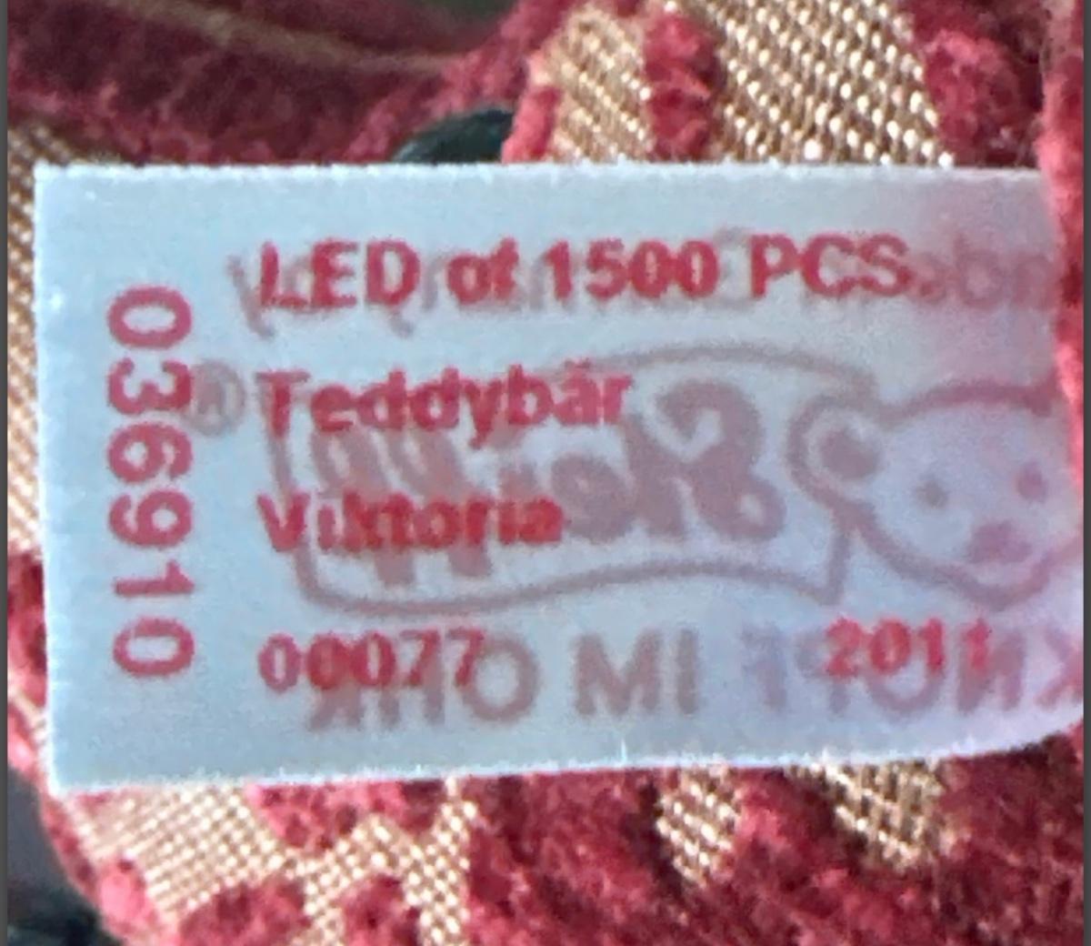 This beautiful Steiff Teddy Bear is made of viskose and stands 12”. Incredibly low limited edition 77/1500. Has COA and box.
