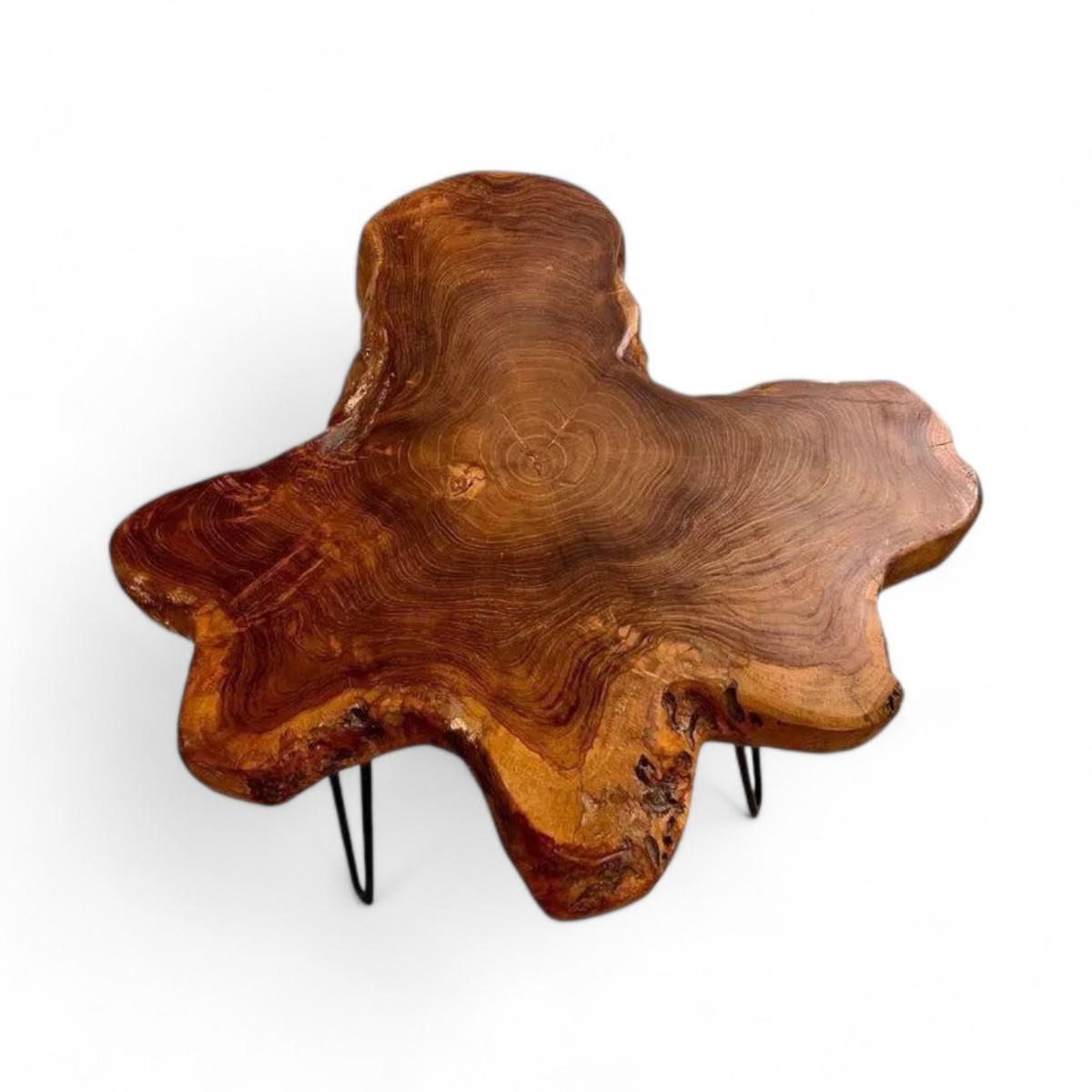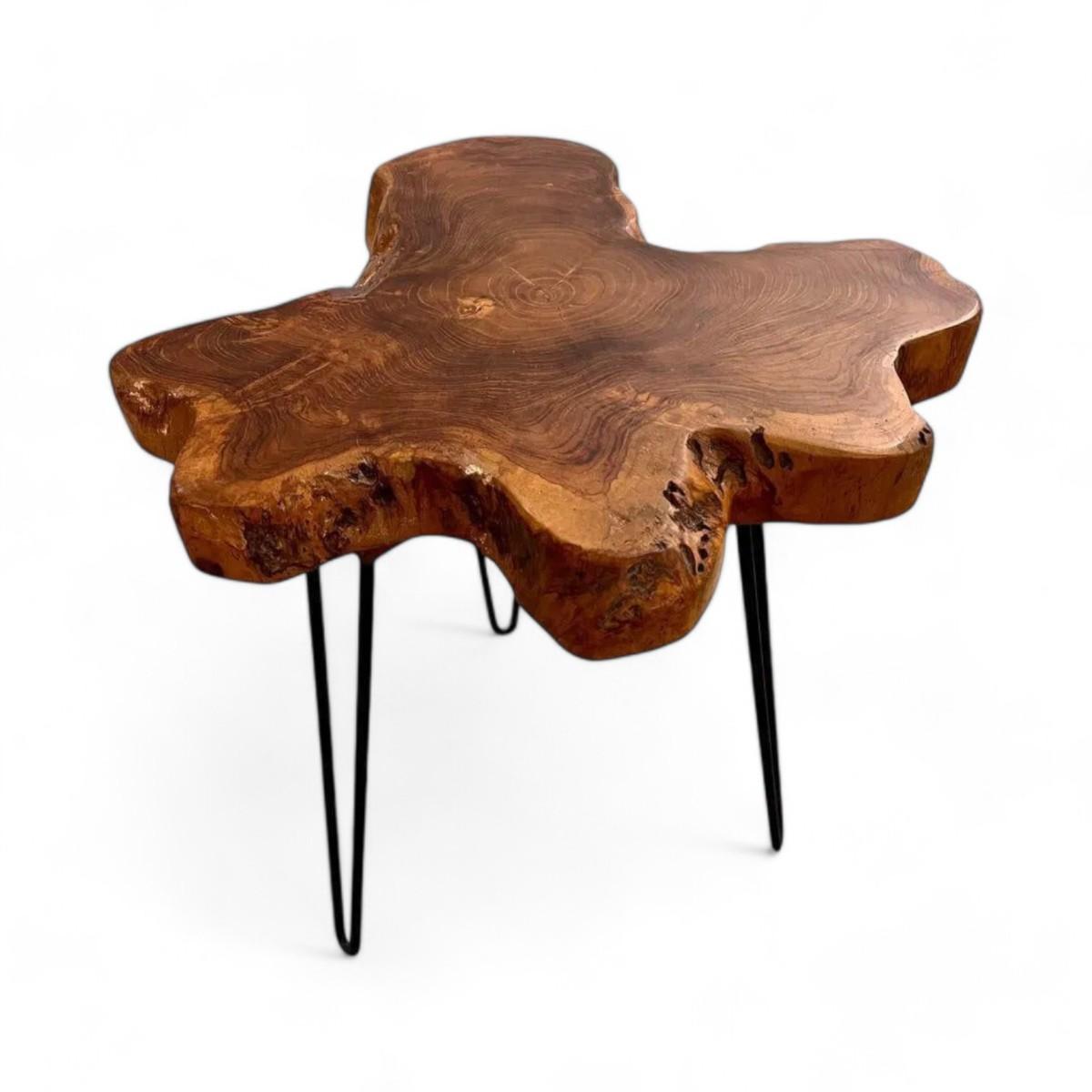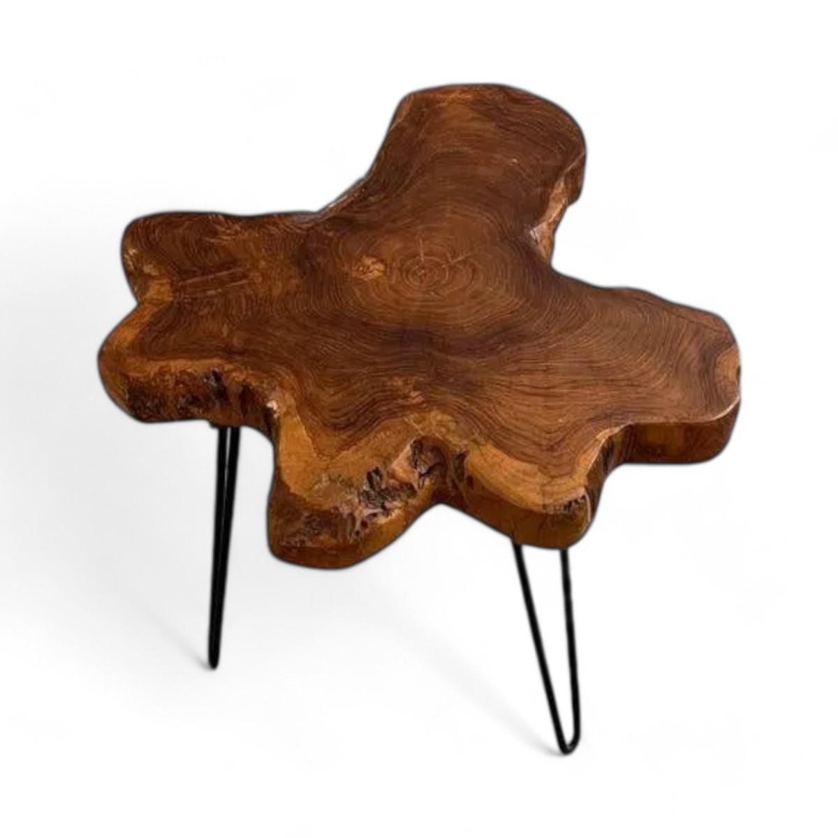 Teak Live Edge End Side Table Solid teak top with black metal hairpin legs