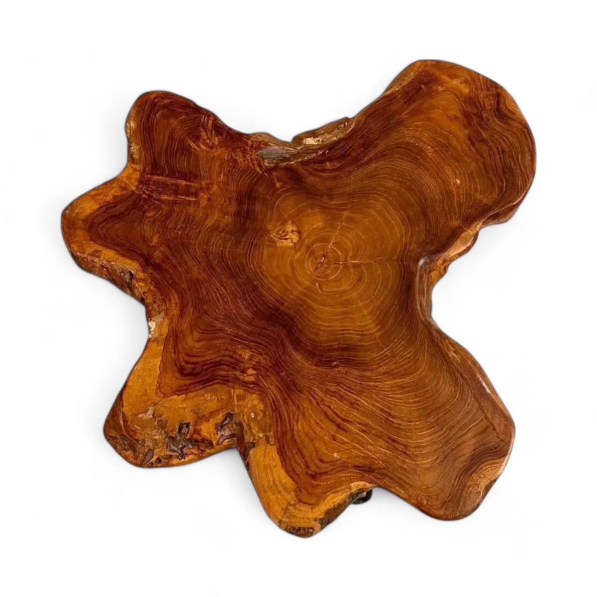 Design Features: This side table showcases a solid teak top with a live edge, highlighting its unique shape and grain pattern. The black metal hairpin legs provide a modern contrast to the natural finish, making it a timeless and practical living accessory. Each piece is one-of-a-kind, ensuring your table is a unique addition to your space and a fabulous gift.