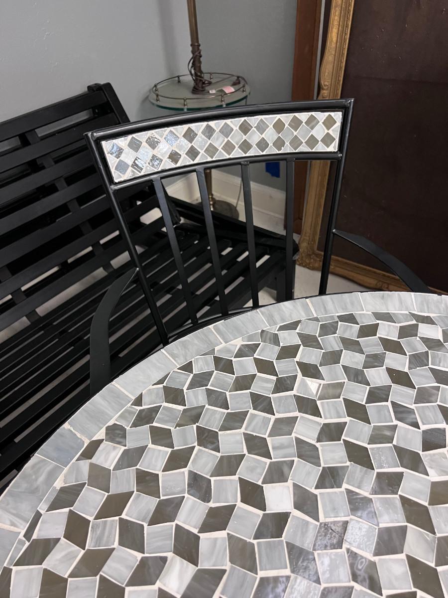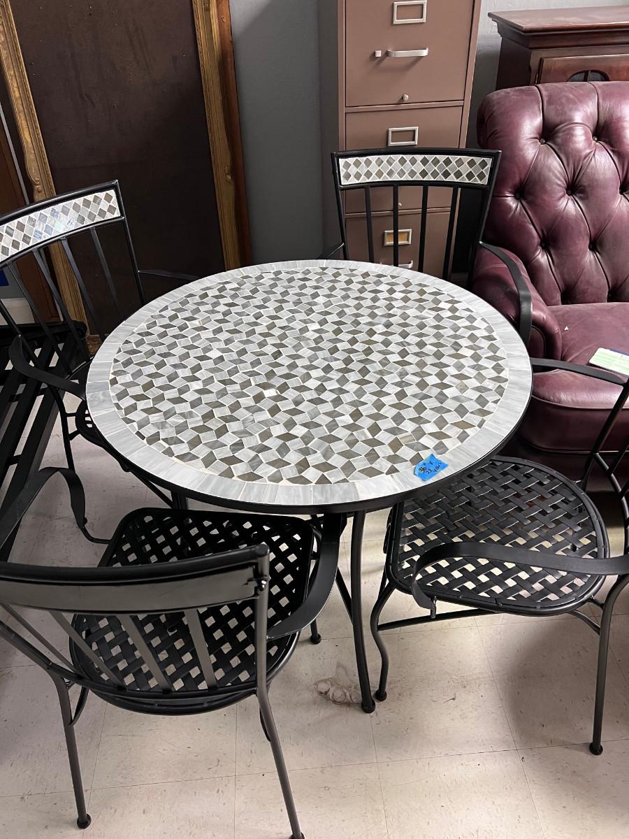 Tile patio table 4 metal chairs with tile backs