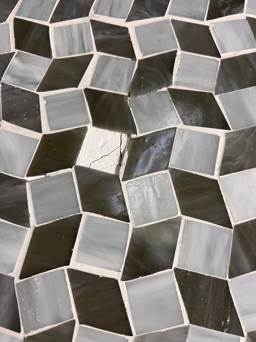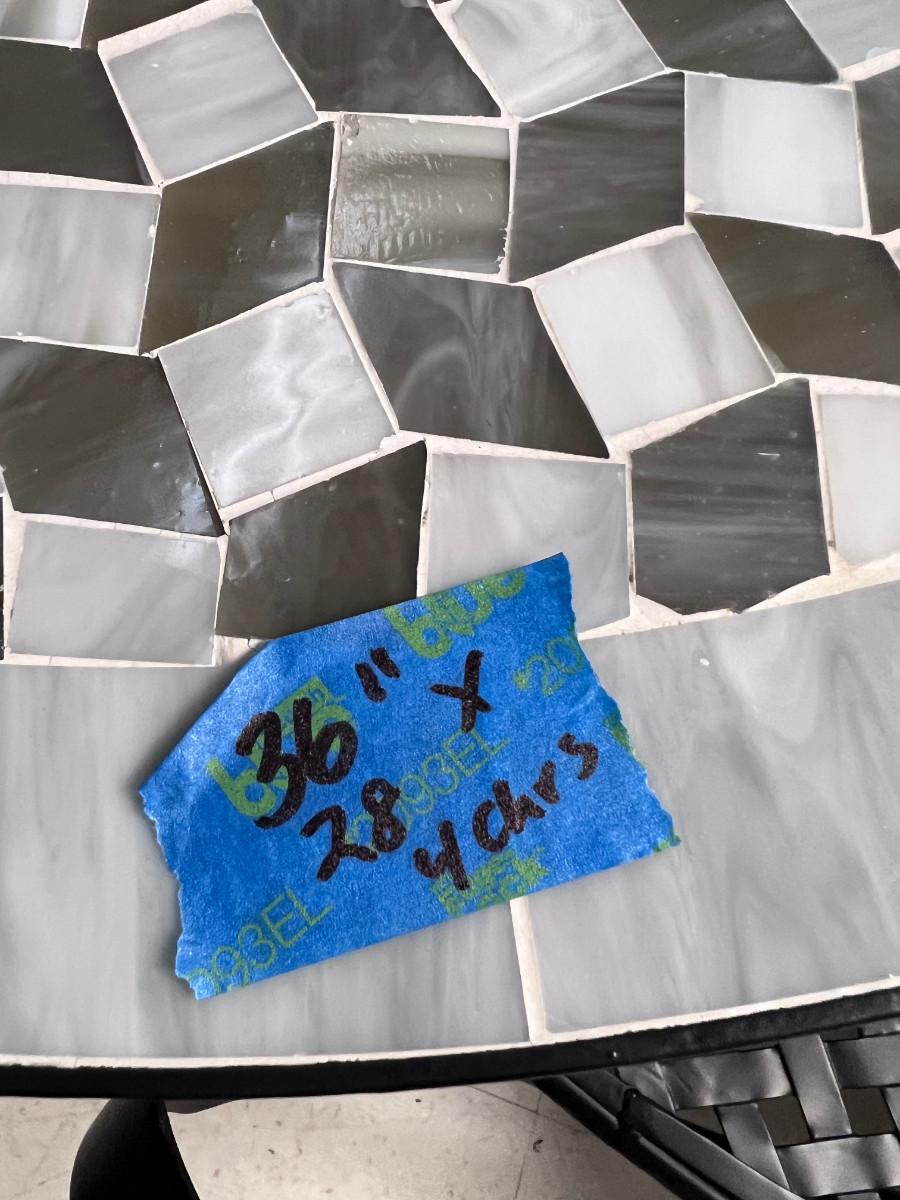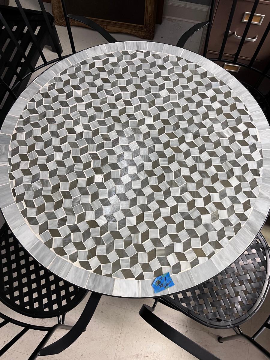 36" round Black, white and gray table . In great shape, except for 1 tile missing. Used only indoors, but made for patio use. NO SHIPPING