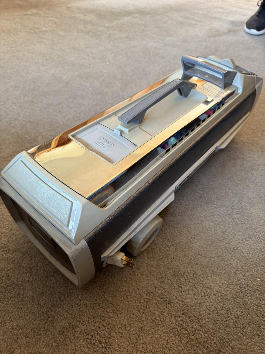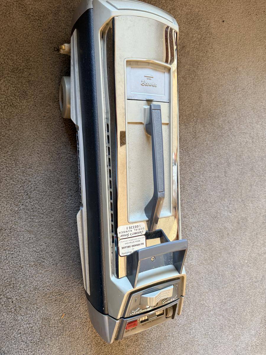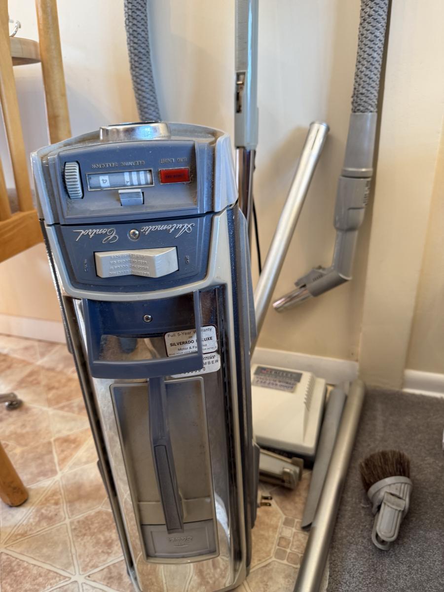 • Vintage Filter Queen Automatic Control Silverado Deluxe Vacuum: A classic, heavy-duty vintage canister vacuum cleaner with the distinct "Automatic Control Silverado Deluxe" branding. Comes with the main unit, hoses, and attachments. Note: Due to size, this item is local pickup only.