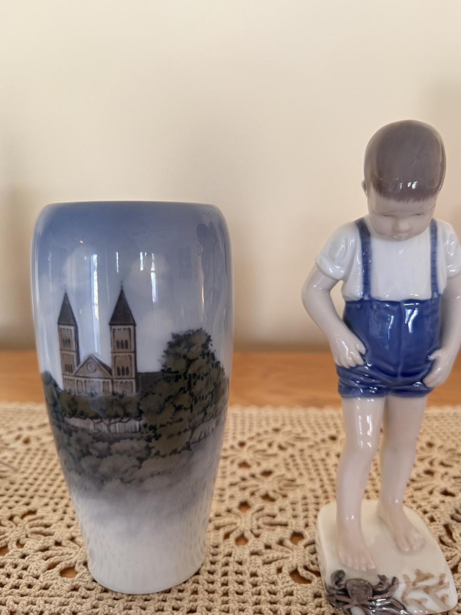 • Royal Copenhagen/Bing & Grøndahl Style Porcelain Figurines: A charming set of porcelain children figurines, including a boy in blue overalls and a sweet pair of children embracing. These display the classic, quality artistry often associated with famous Danish makers.