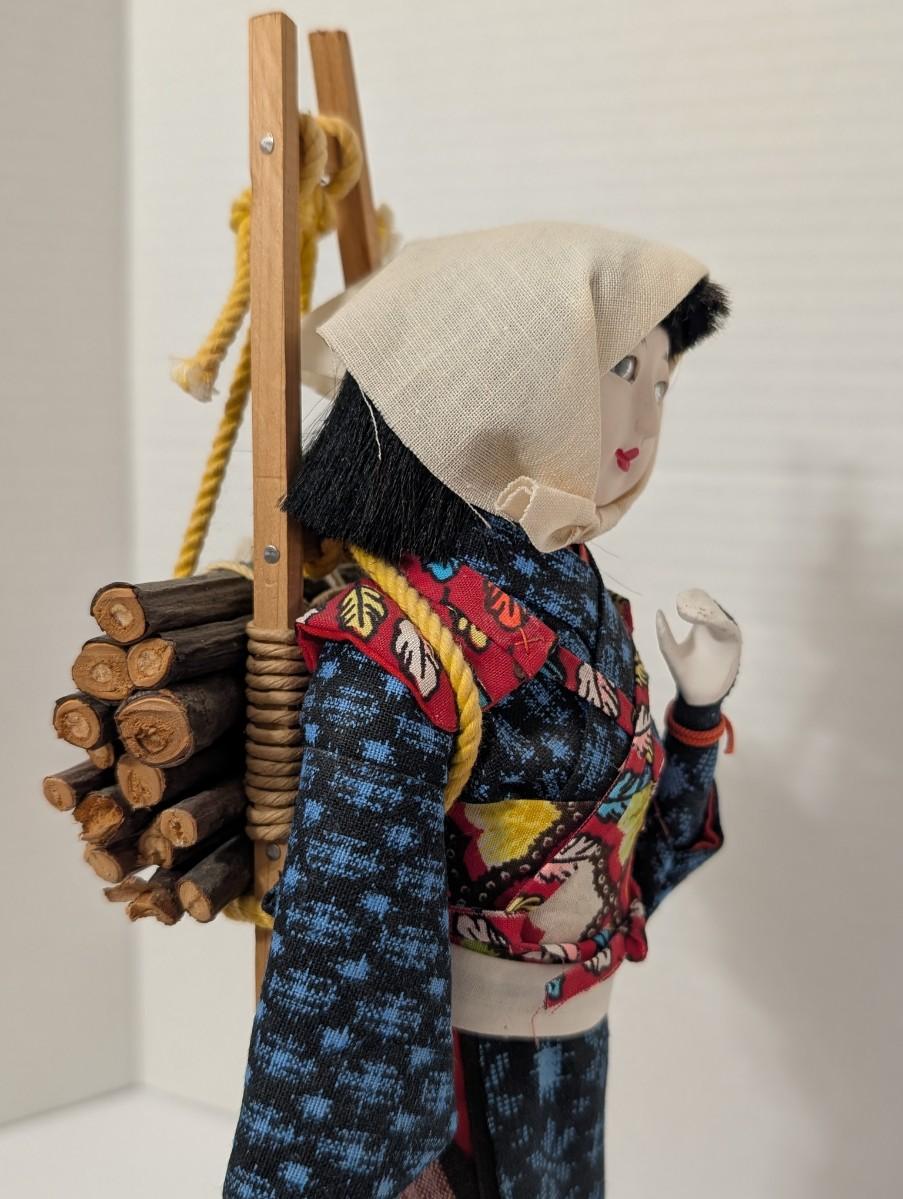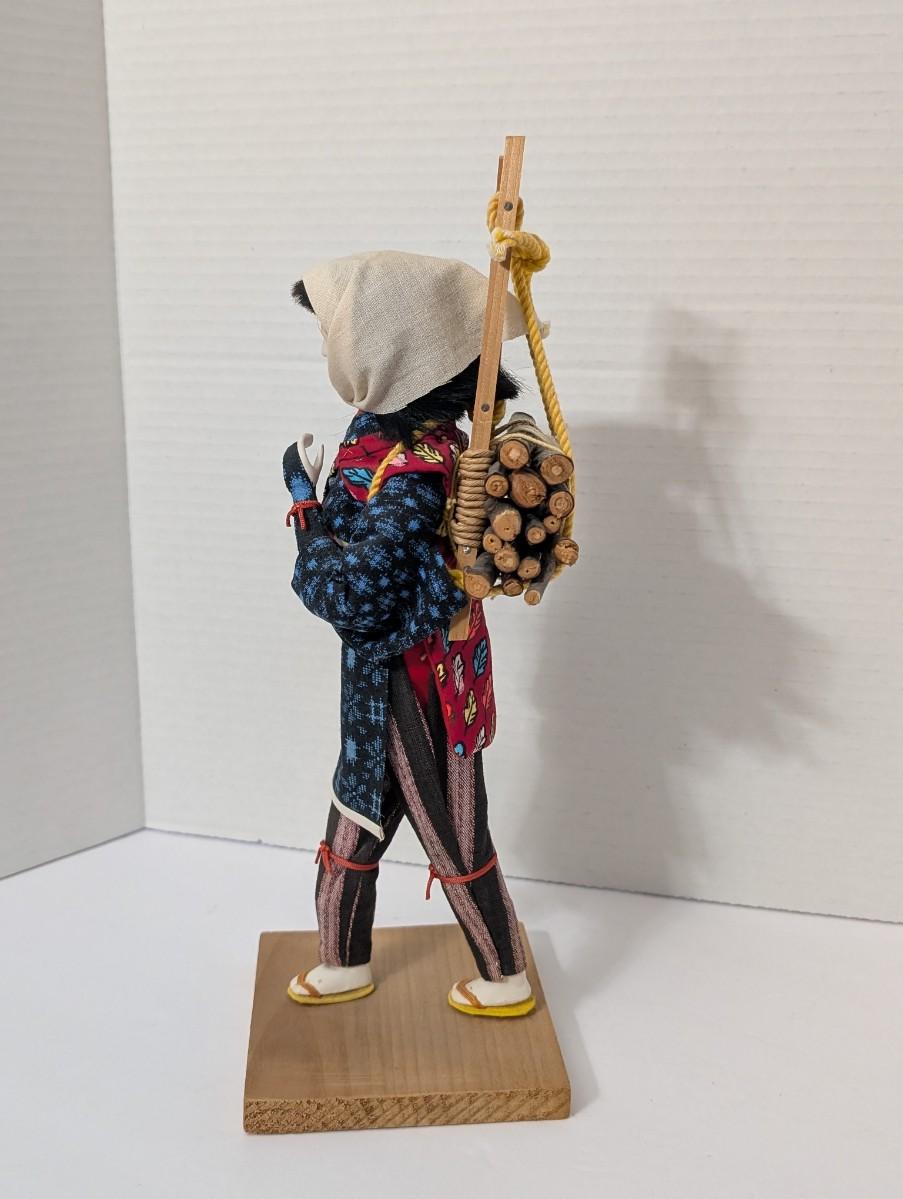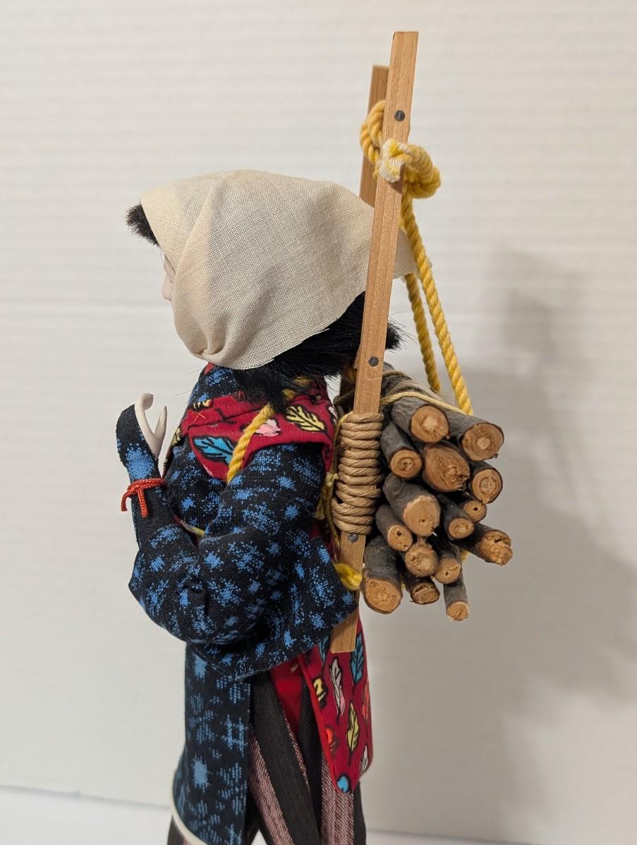 Japanese folk doll, firewood carrier doll, wood carrier doll, Japanese village figure, fabric costume doll, cultural decor, folk art figure, display doll, artisan doll, traditional Japanese decor