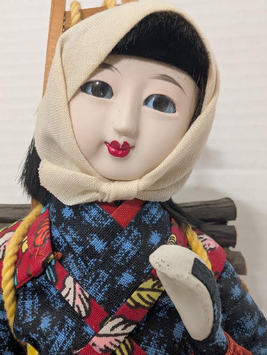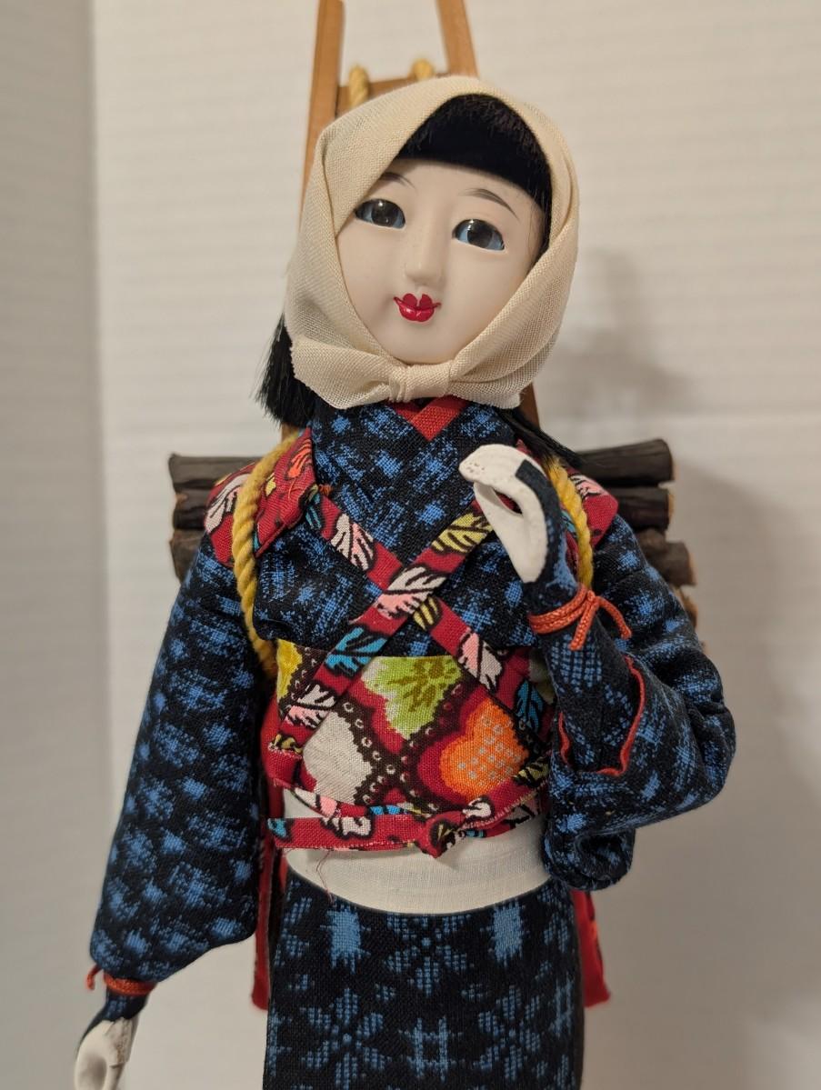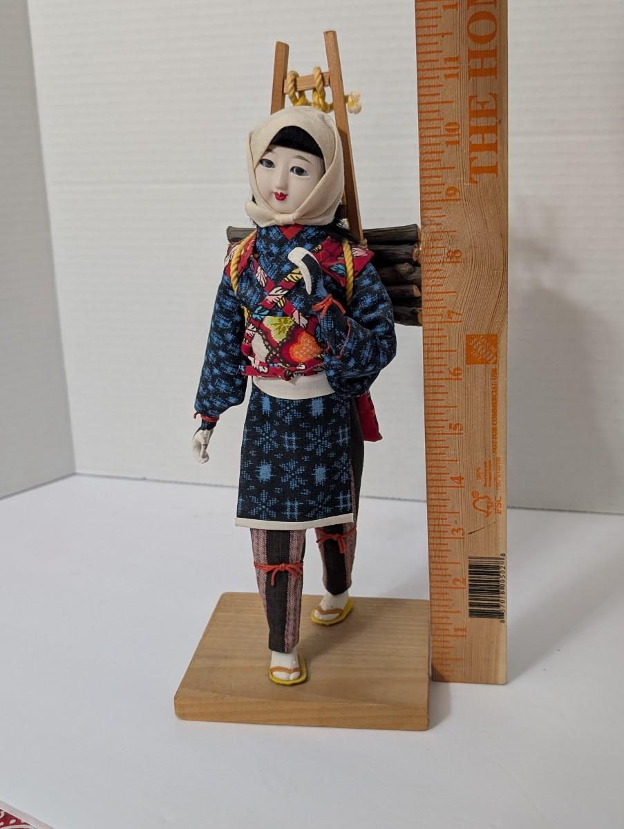 Japanese folk doll, firewood carrier doll, wood carrier doll, Japanese village figure, fabric costume doll, cultural decor, folk art figure, display doll, artisan doll, traditional Japanese decor