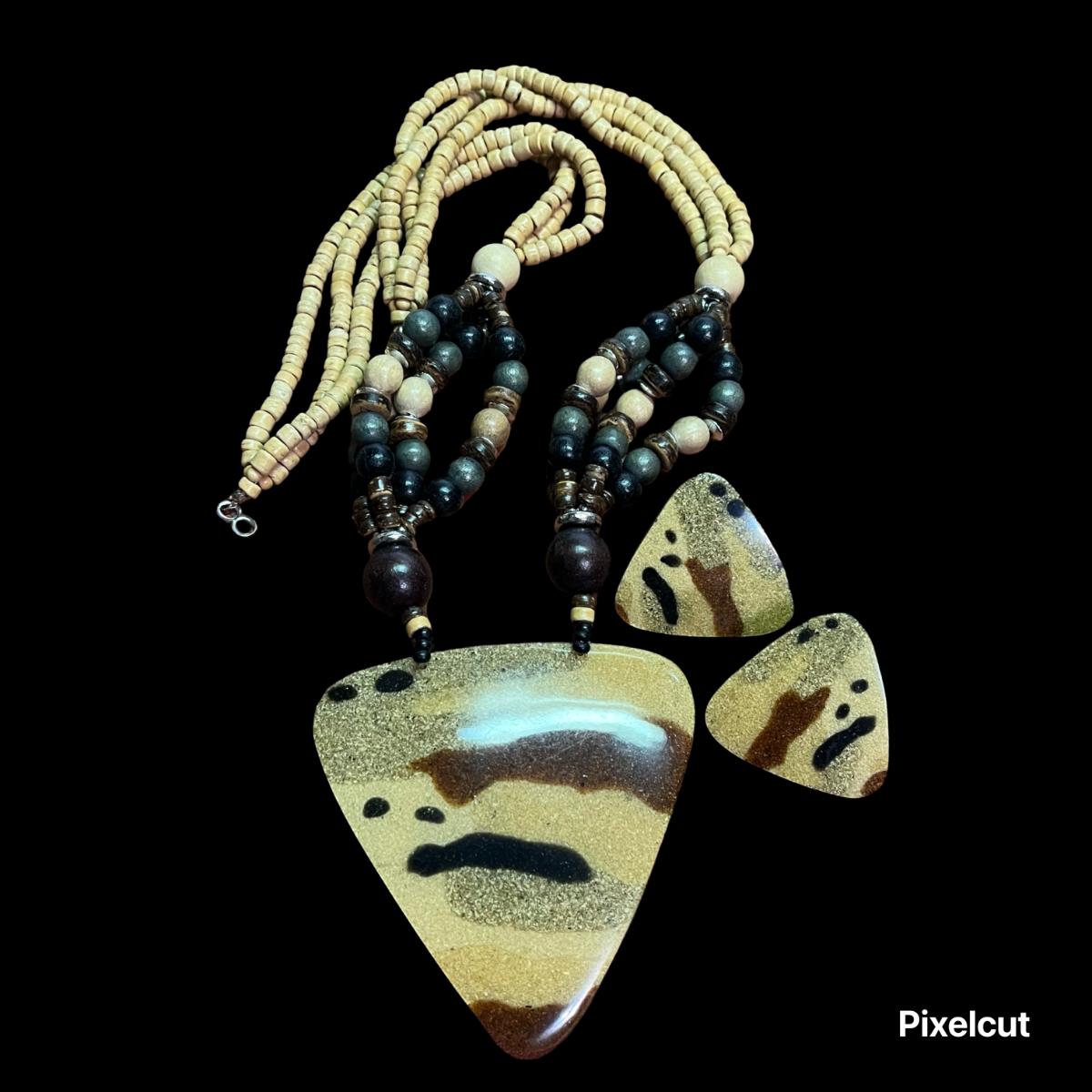 Tribal Statement Pendant & Earrings, Wood Safari Necklace