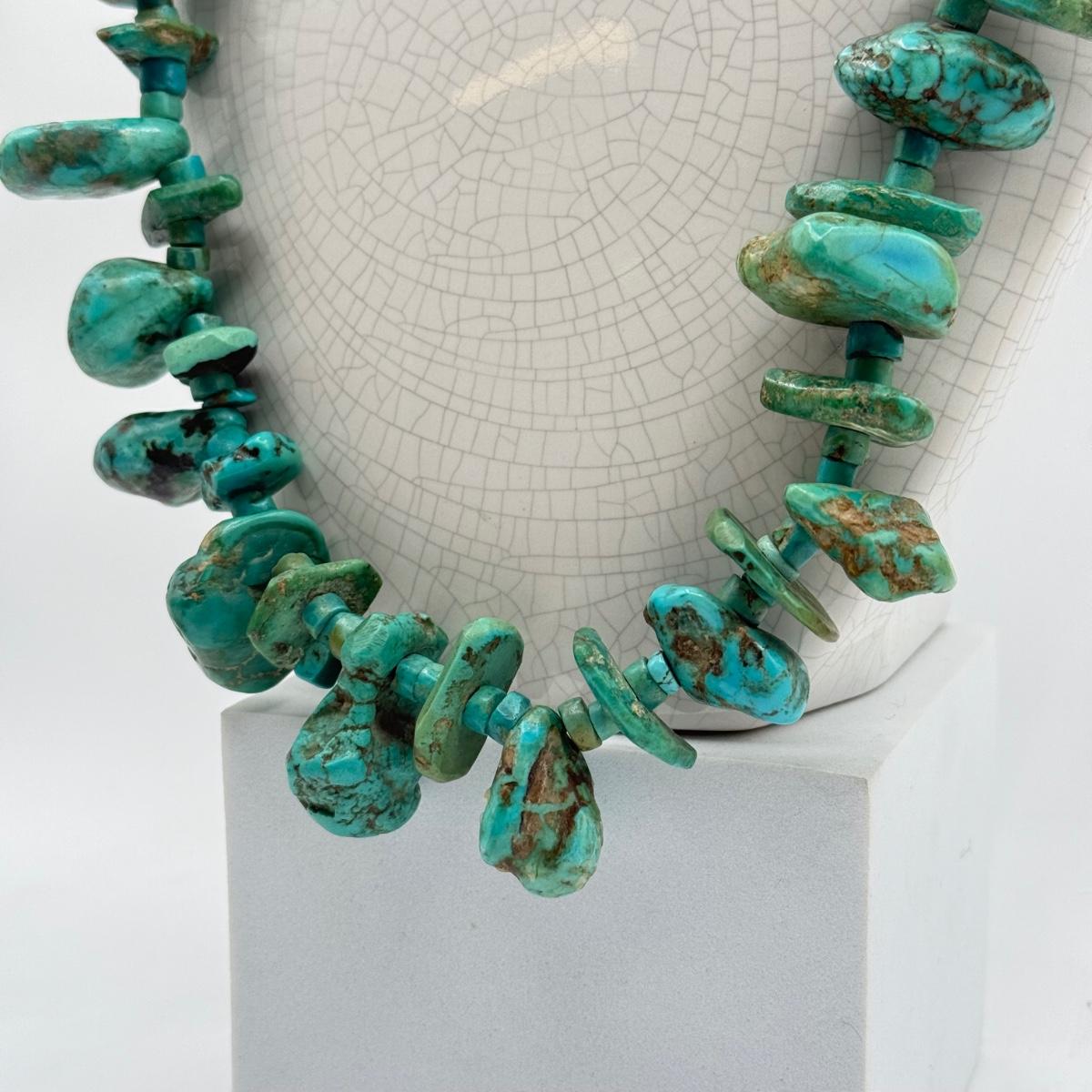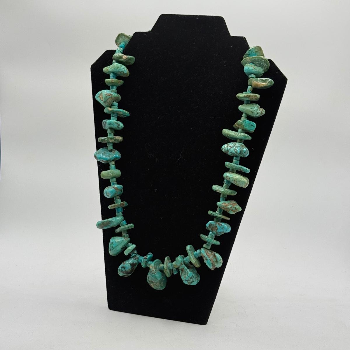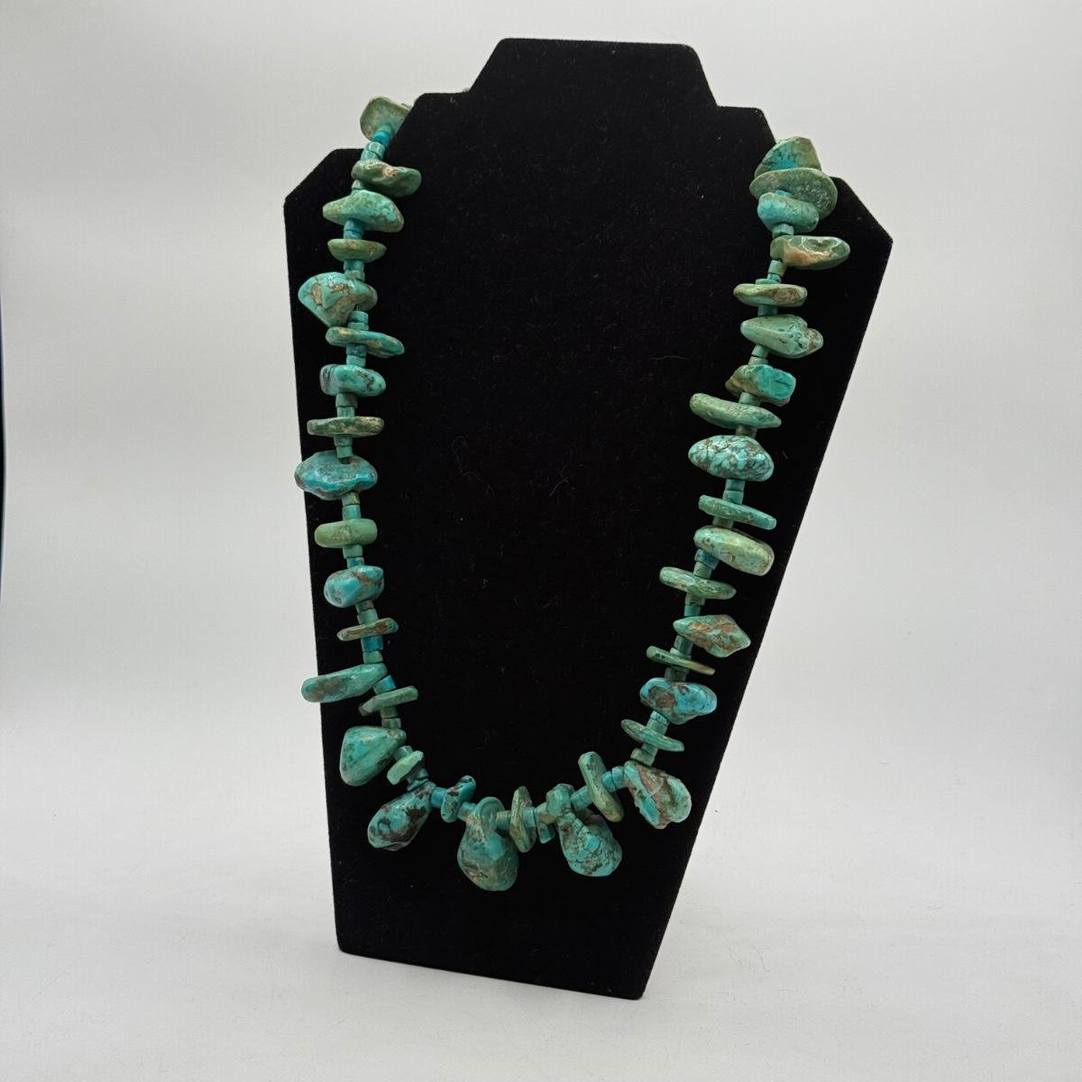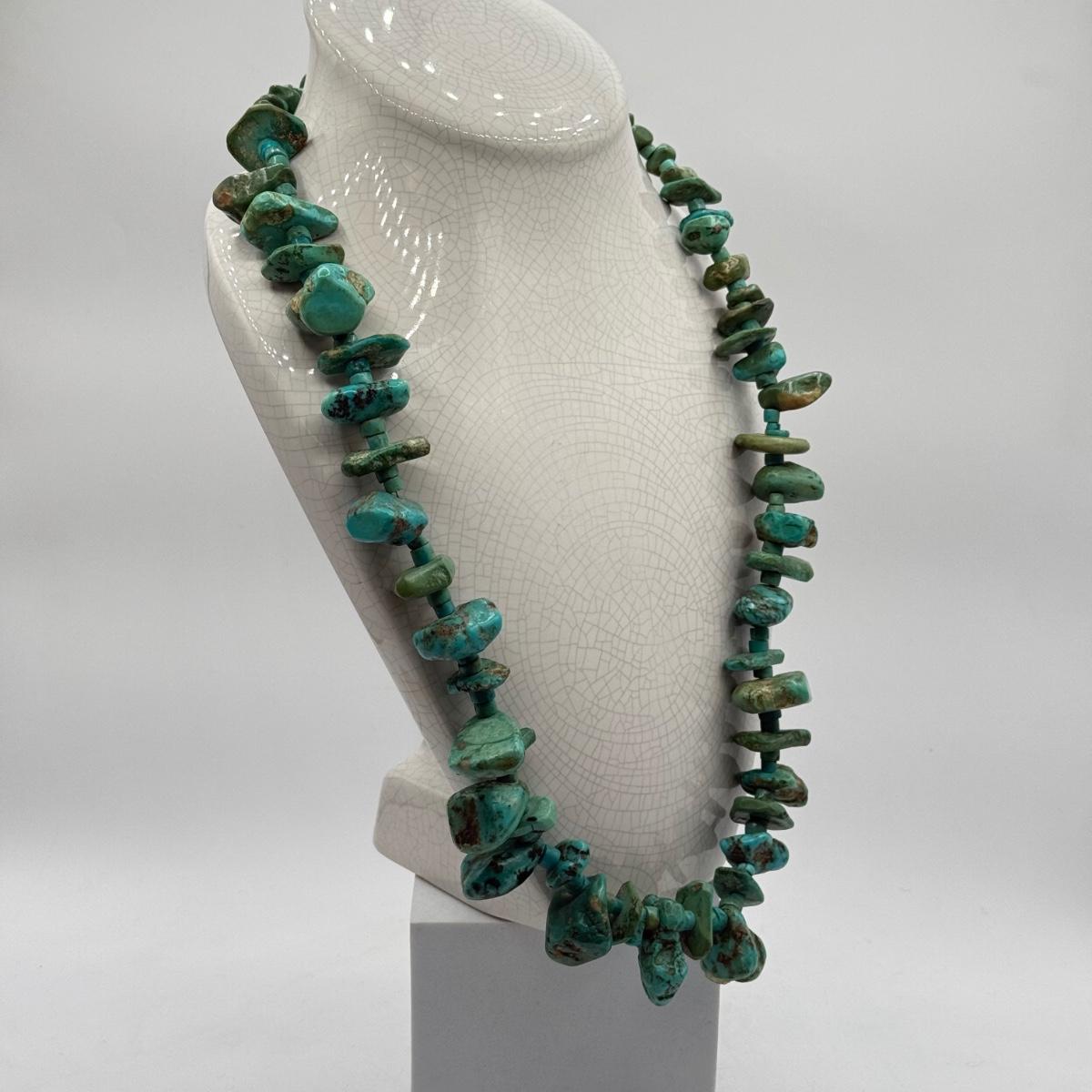 Vtg Santo Domingo Heishi Chunky Turquoise Long 30" L circa 1960-1970s