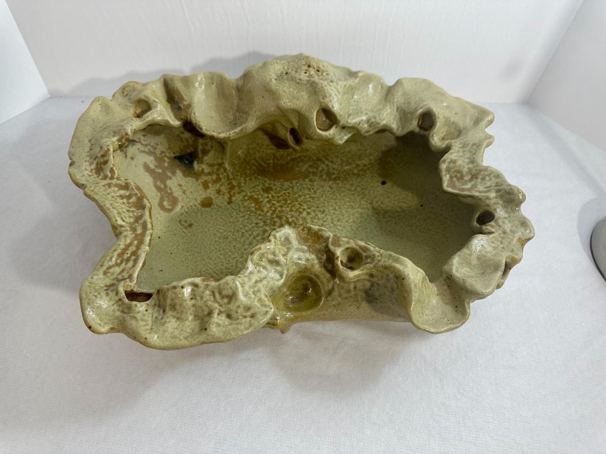 Unique Pottery Centerpiece in Greens and Browns - Signed Homer 92