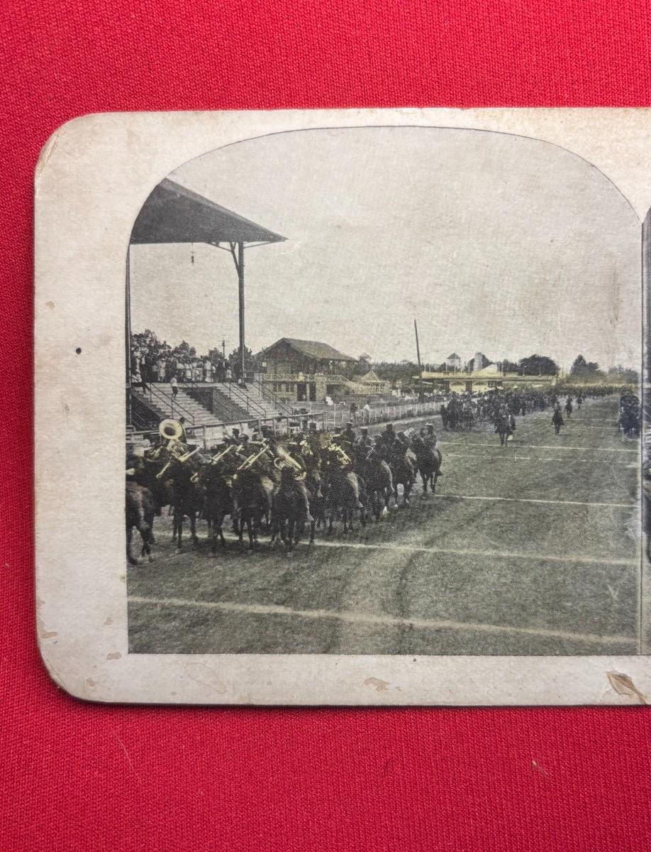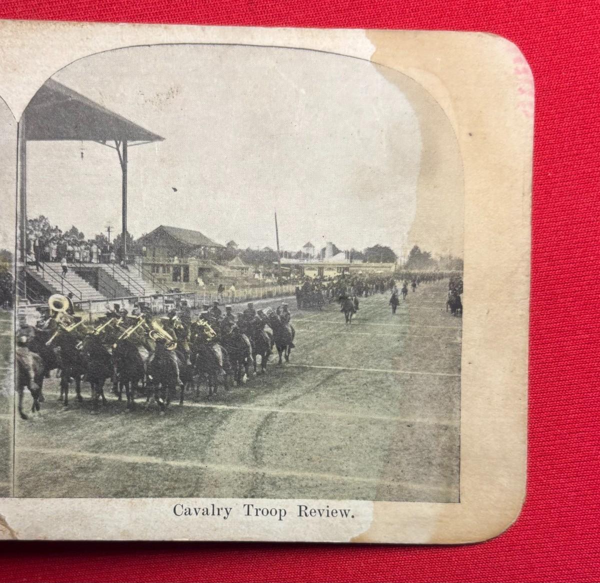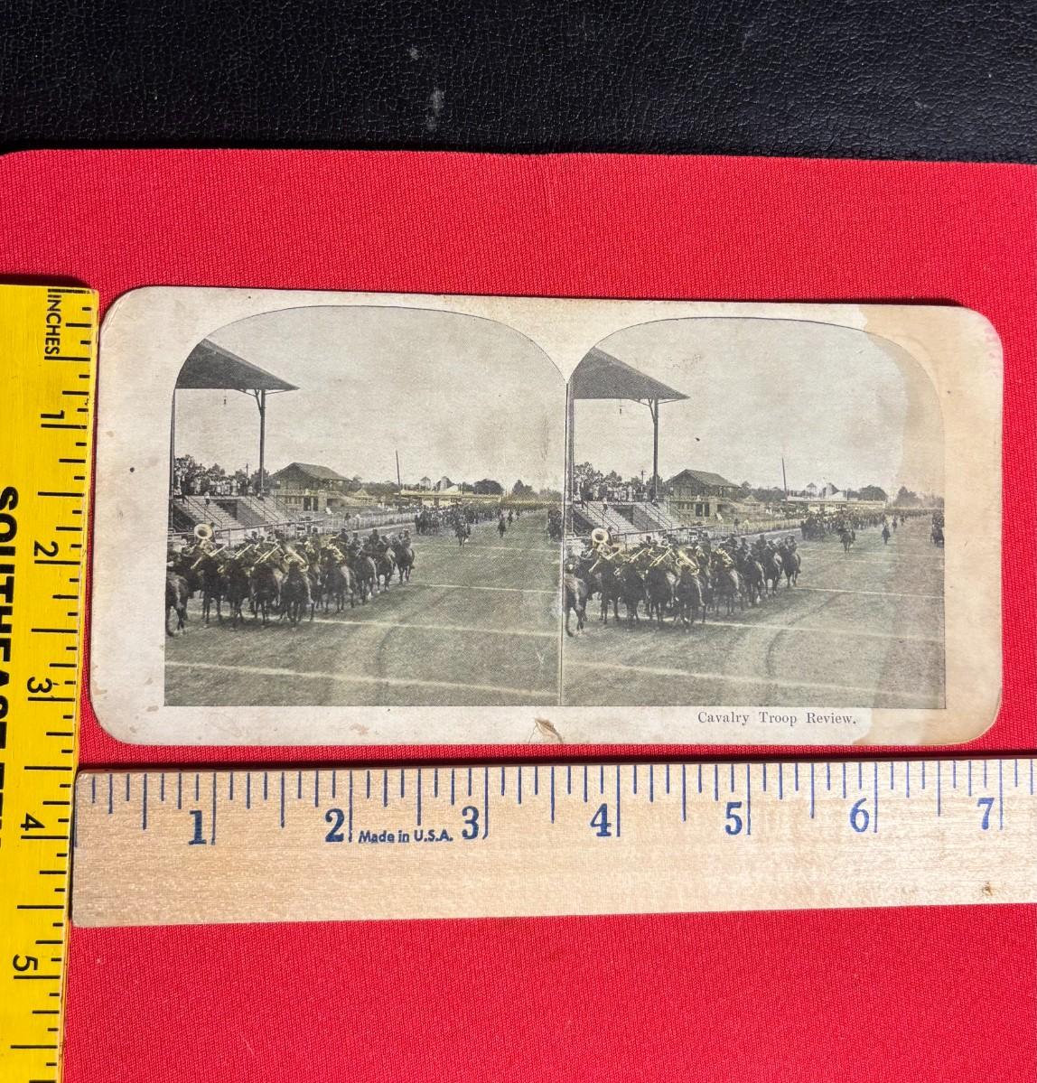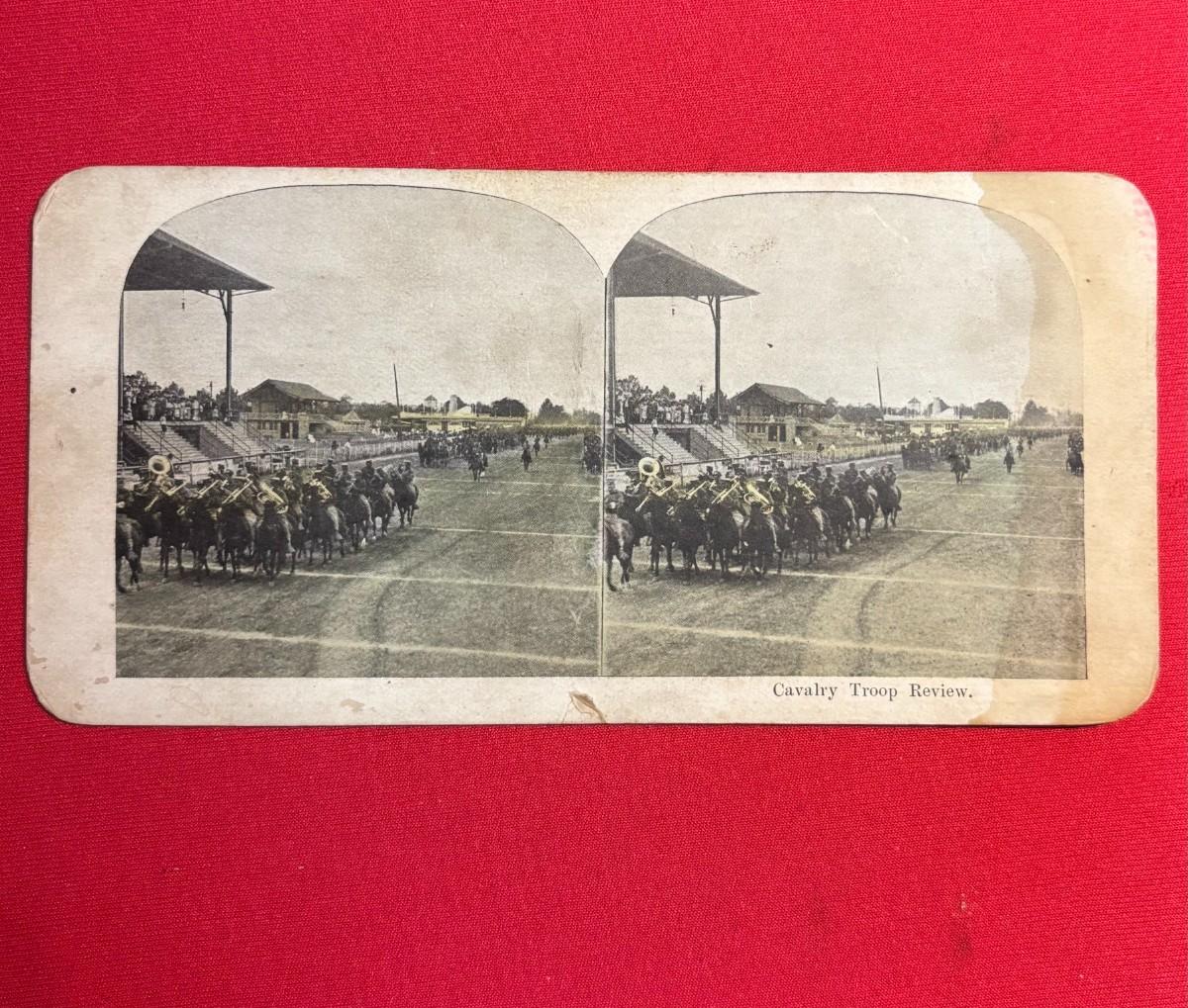 1900's Stereograph CAVALRY TROOP REVIEW Stereoscope Stereo View Card Antique American Soldiers U.S. Army Spanish American War / Philippine American War 1898 to 1902