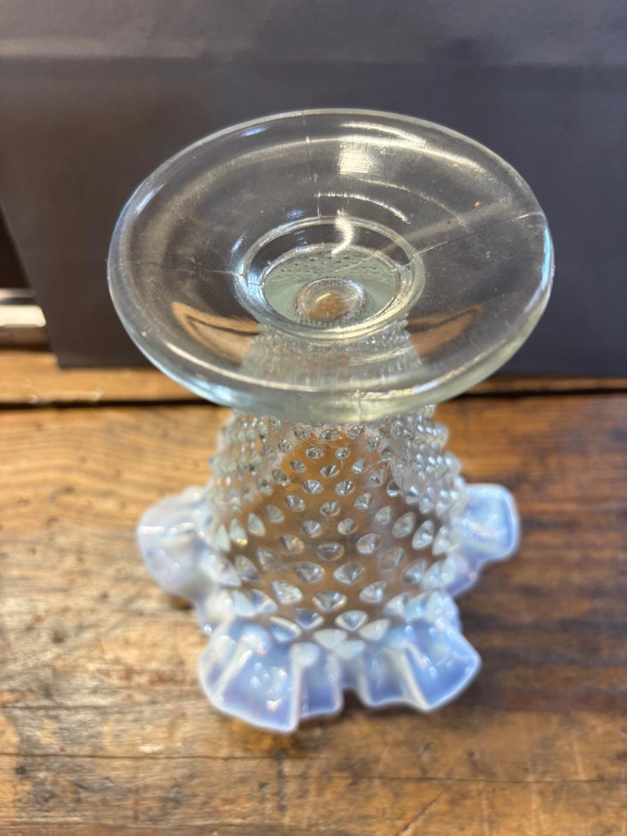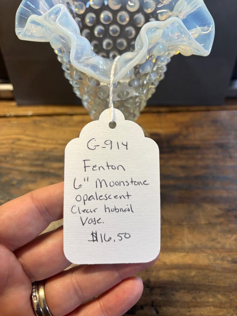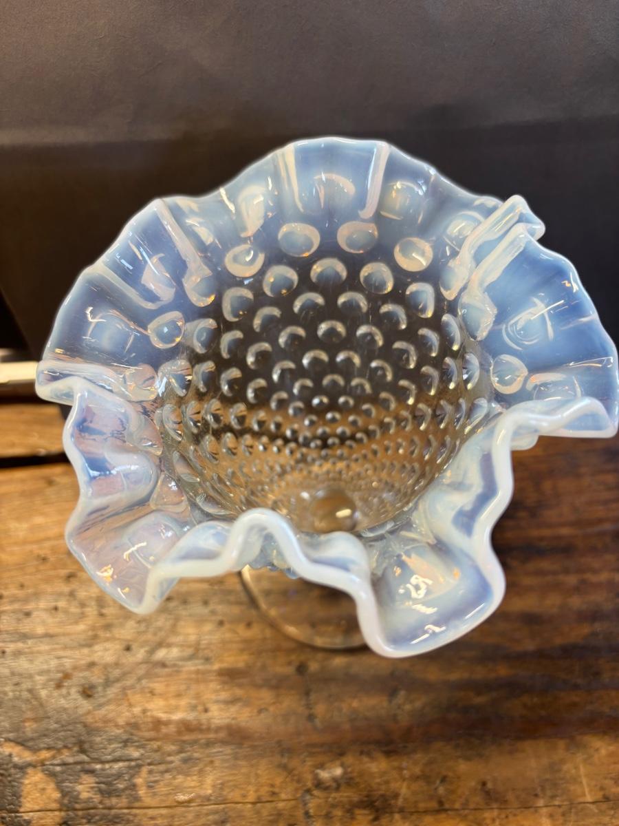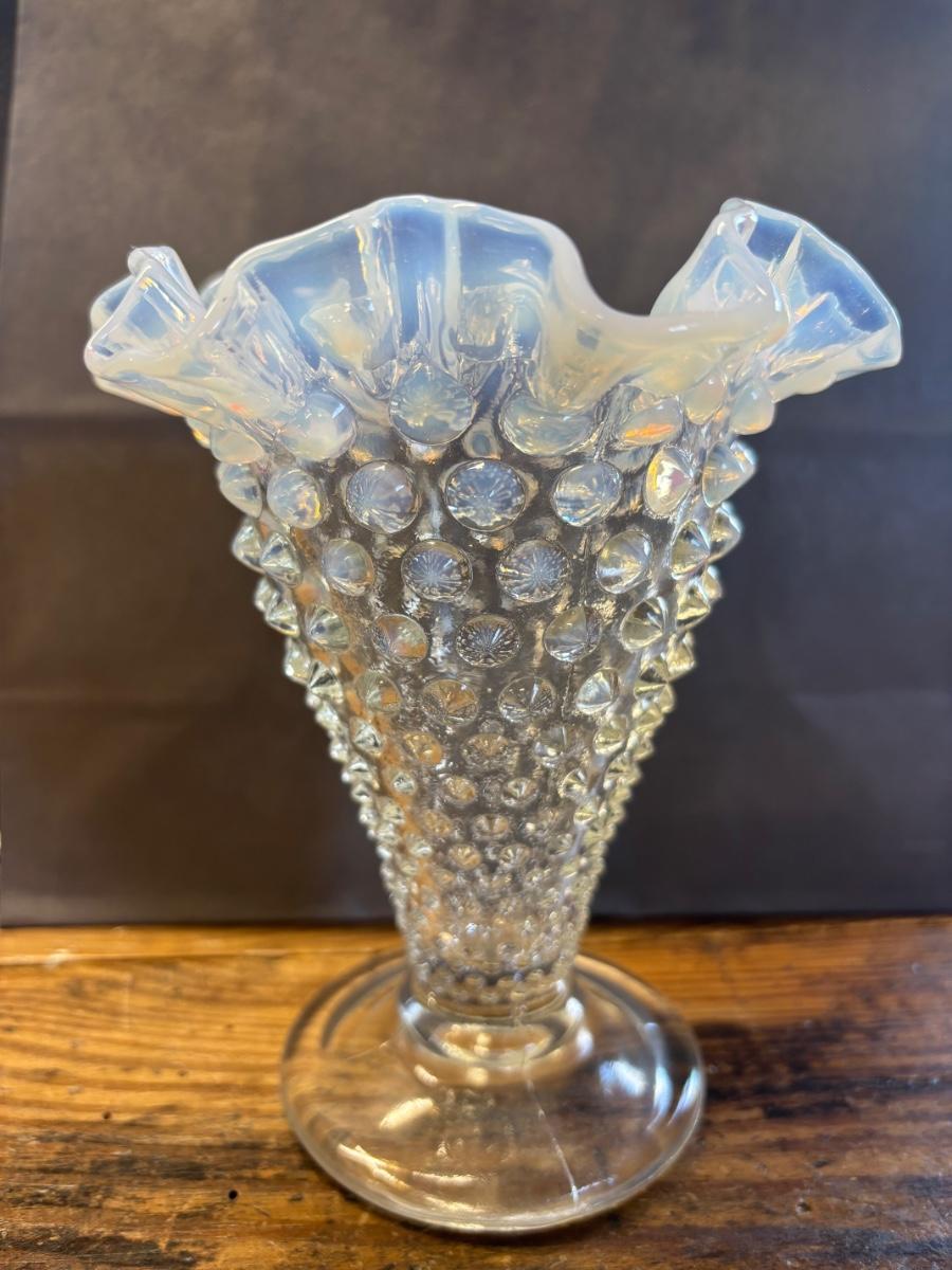 Fenton 6" Moonstone opalescent clear hobnail vase