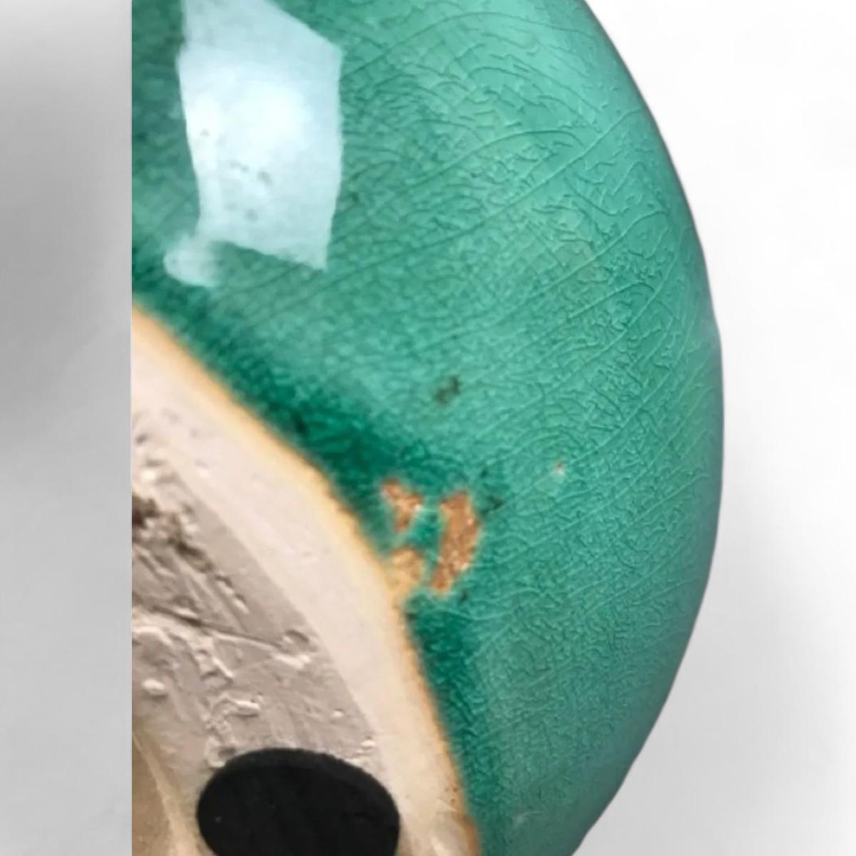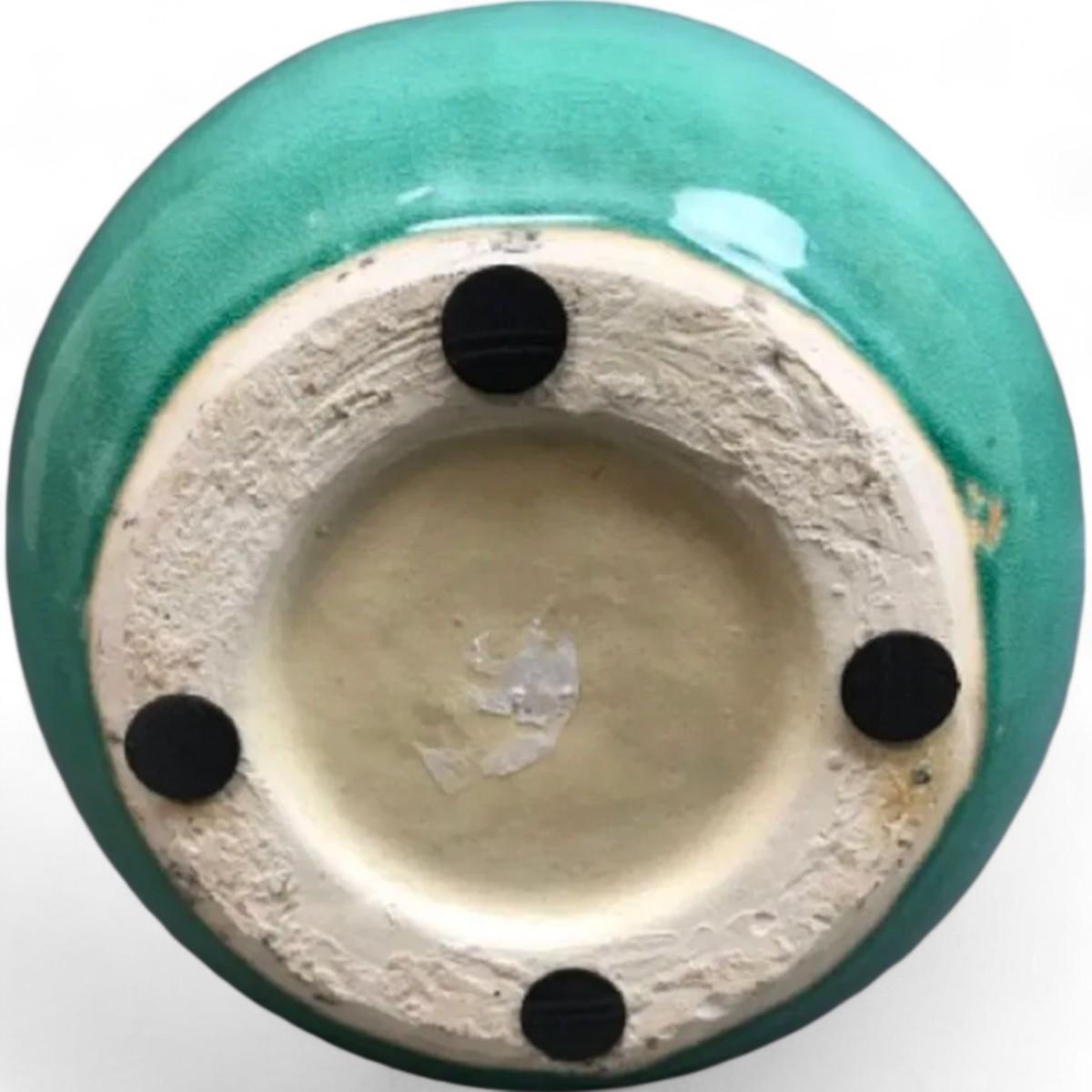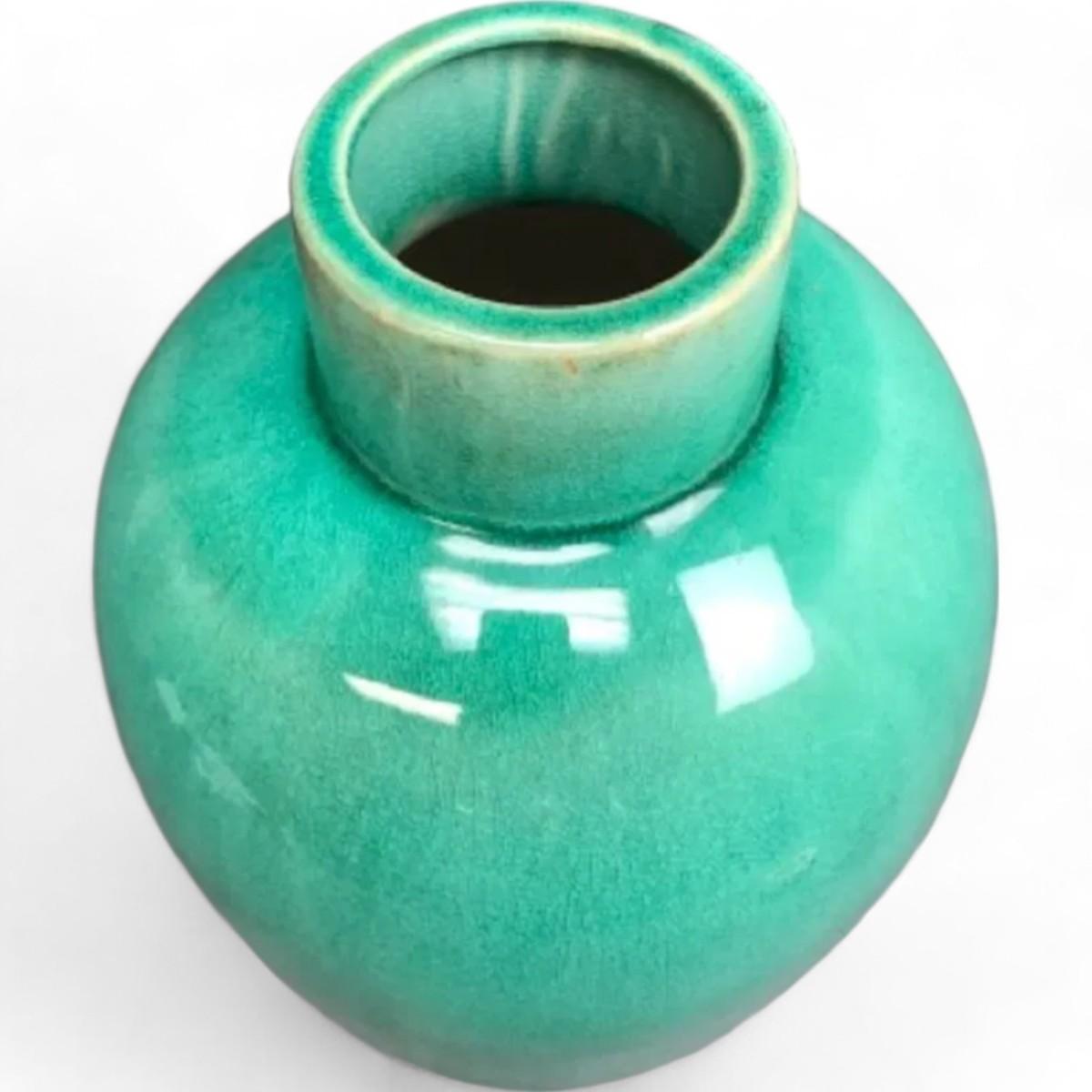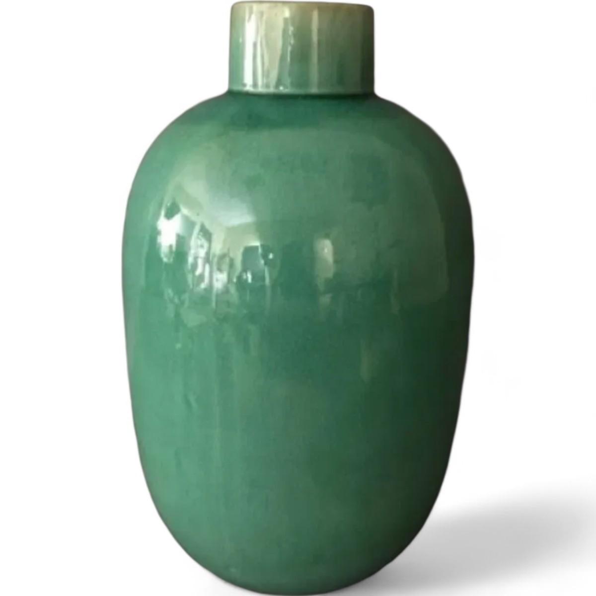This vibrant craquele crackle ceramic glazed green large pottery vase is a striking example of both artistic and functional design. The vase features a bold rich green glaze with a distinctive crackle effect creating an eye-catching texture that adds depth and character to the piece. The craquele finish characterized by its network of fine delicate cracks enhances the vases visual appeal and reflects a unique handcrafted quality.