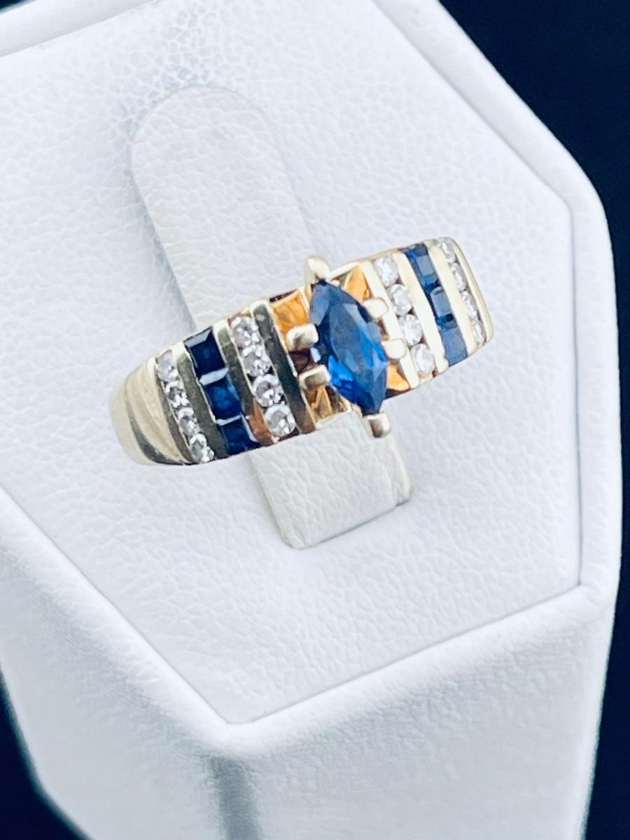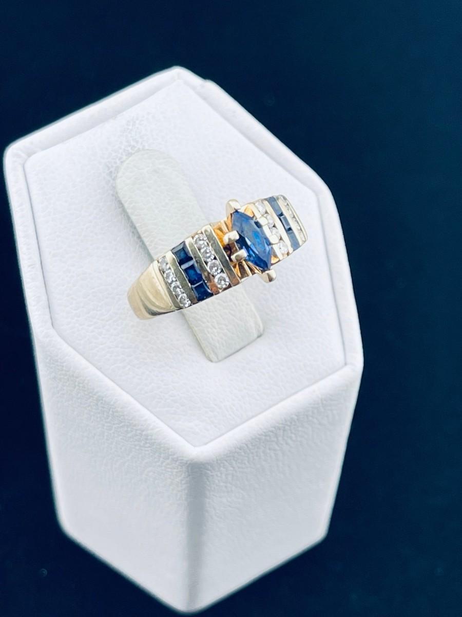 Carat weight: 1/2 carat sapphire and 1/4 carat tdw