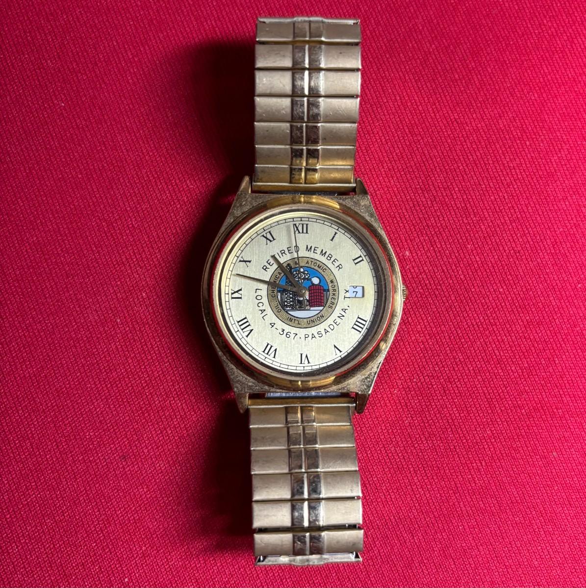 Vintage 1970's Watch Intl Union Oil, Chemical & Atomic Workers, Local 4-367 Pasadena, American Time , needs Battery
