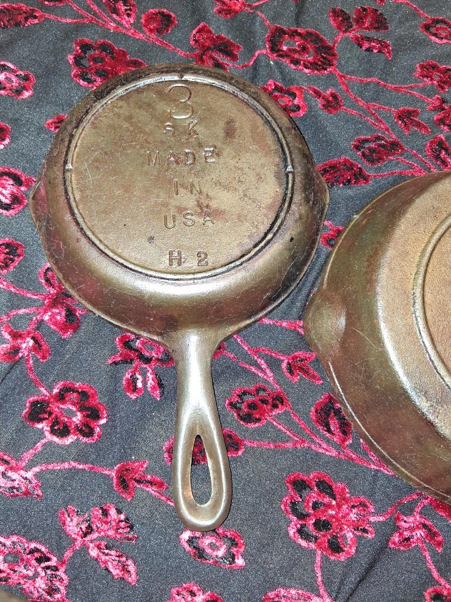 This bundle has 3 varying sizes of Cast Iron Skillets. Varying makers as well. All were seasoned for cooking, not just display. Have not been used in quite a while & will need to be cleaned properly.