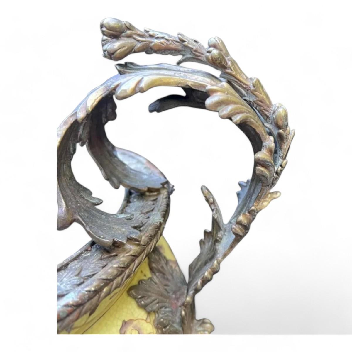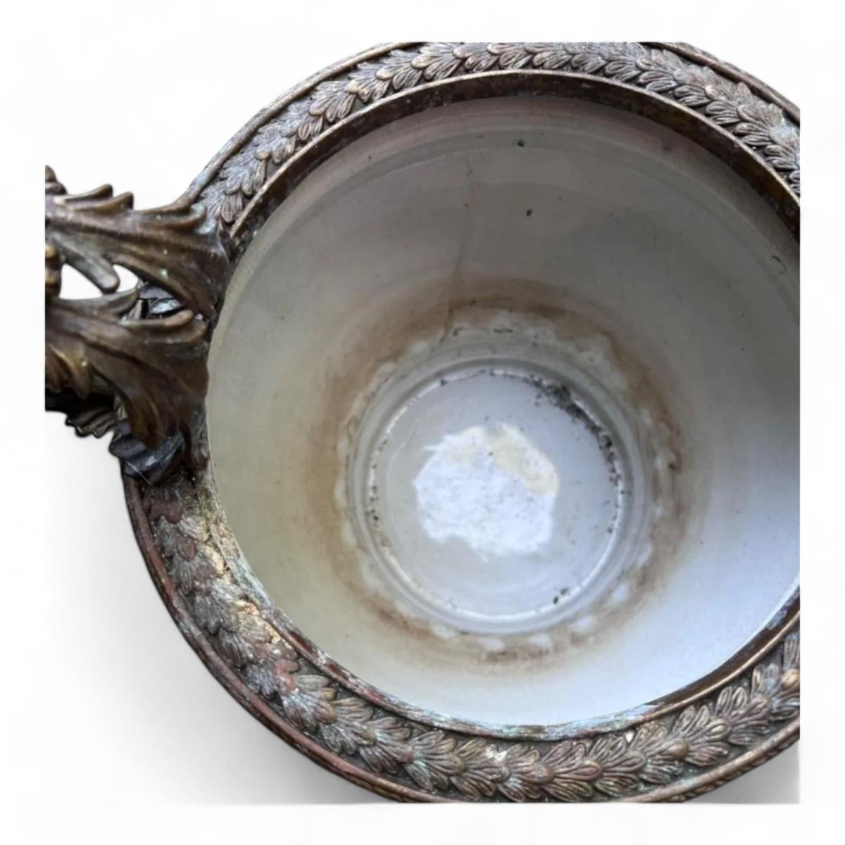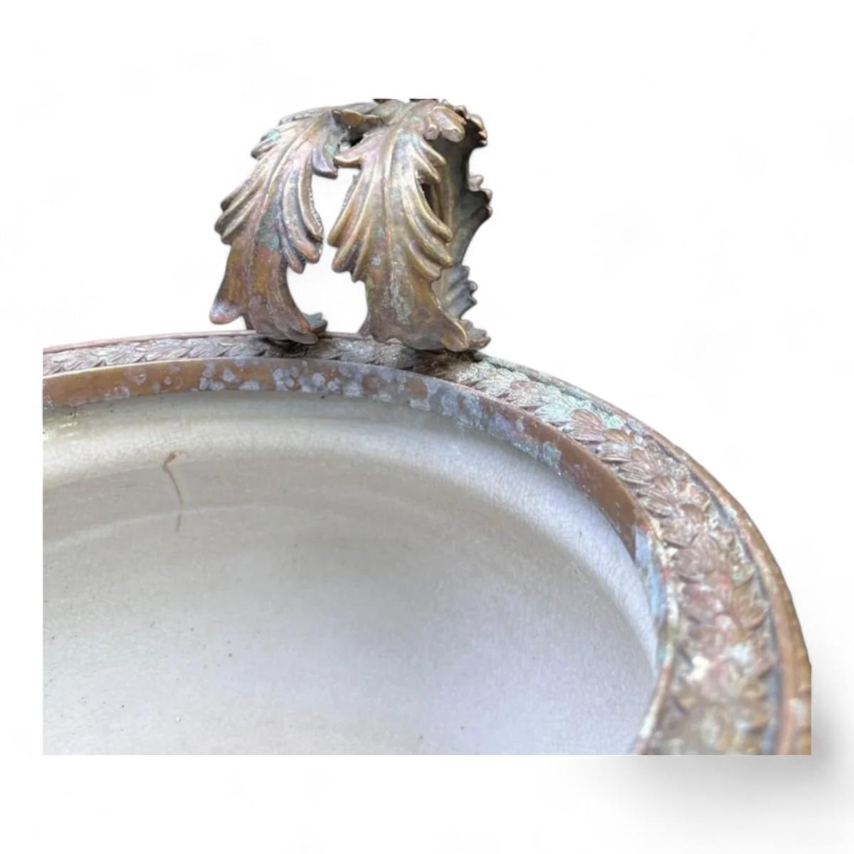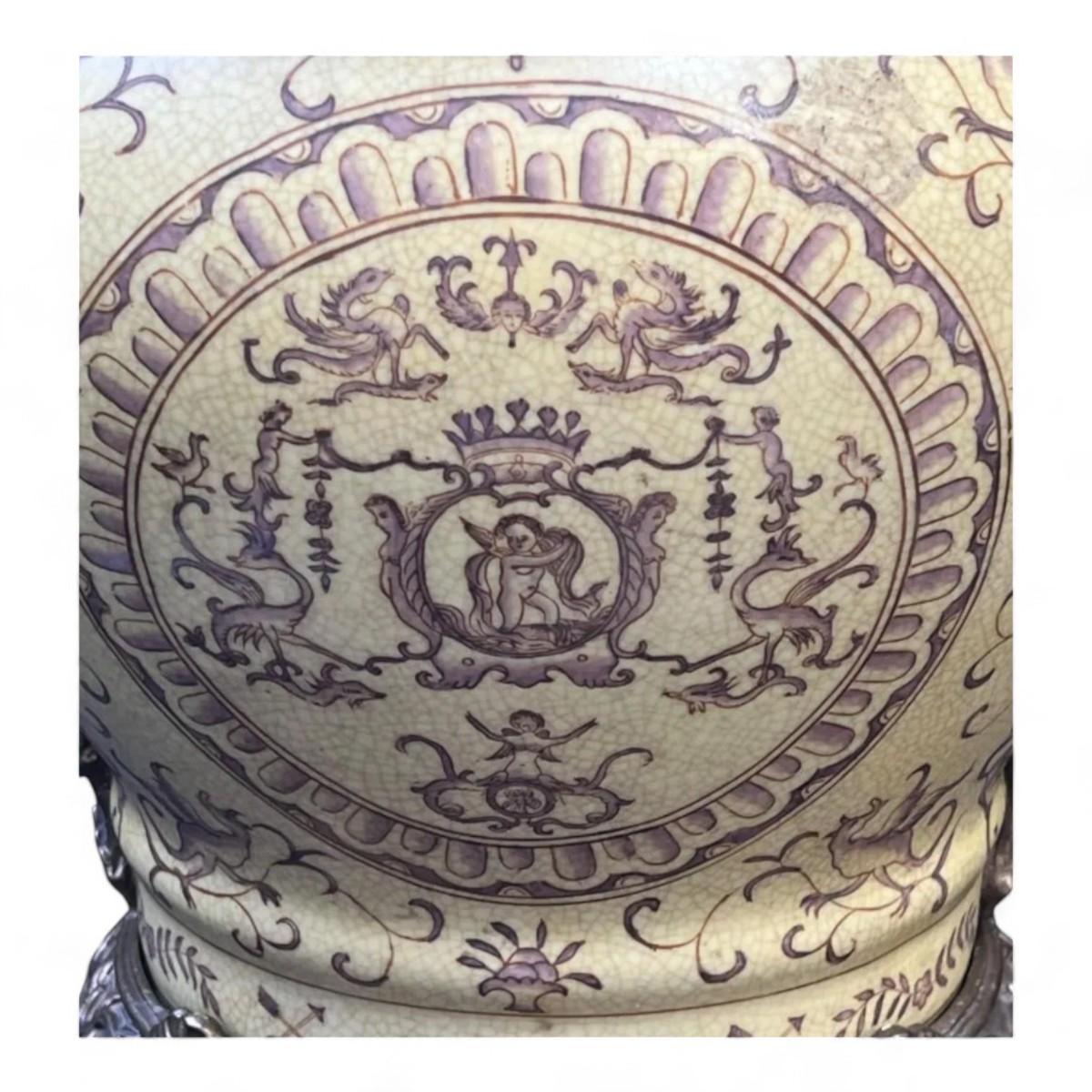 Vintage Chinese Hand Painted Signed Porcelain And Bronze Ormulu Cache Pot Jardiniere