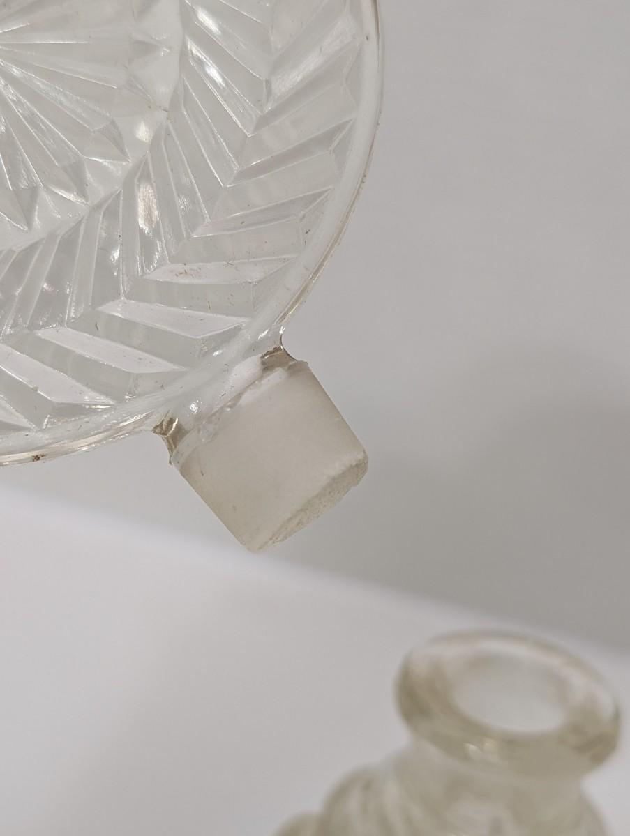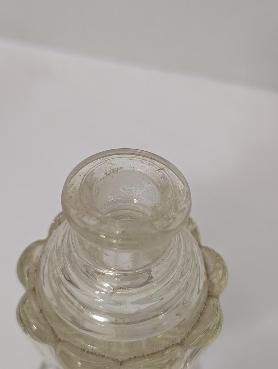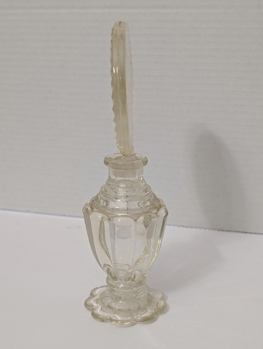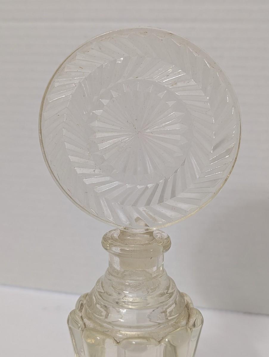 Vintage Clear Pressed Glass Perfume Bottle with Round Etched Disc Stopper and Paneled Stem Base
