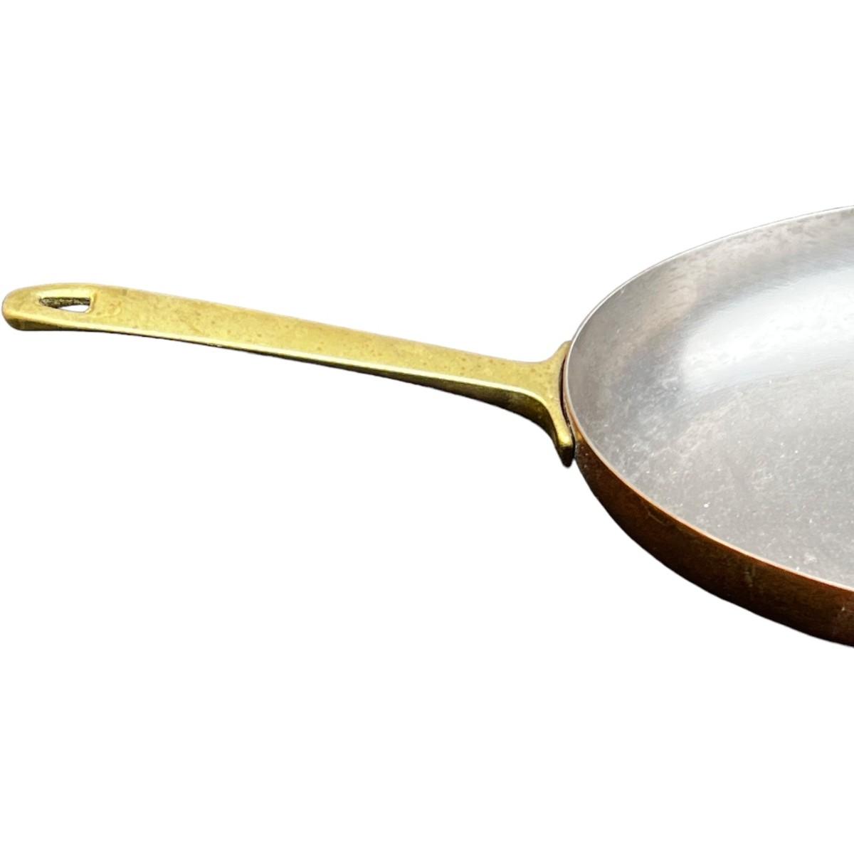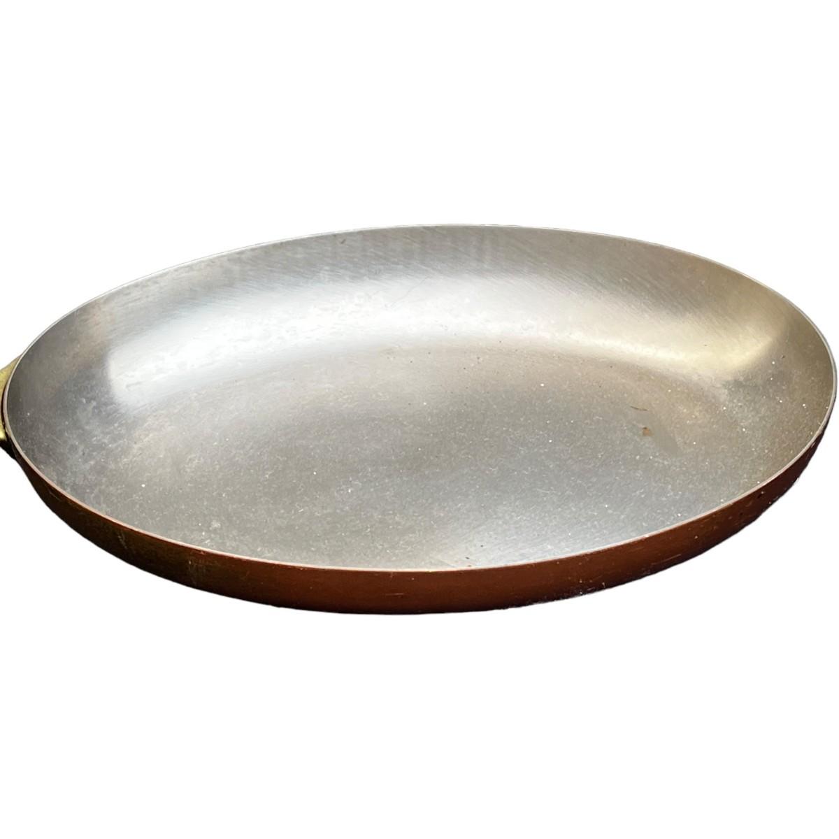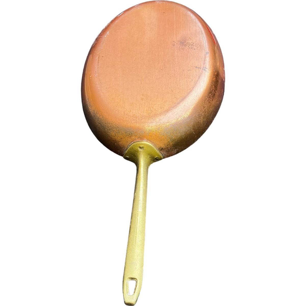 Design Features:A This Vintage Copper Oval Pan with a Brass Handle combines classic charm with practical functionality. The warm copper finish and sturdy brass handle make it a stylish and durable addition to any kitchen or display.