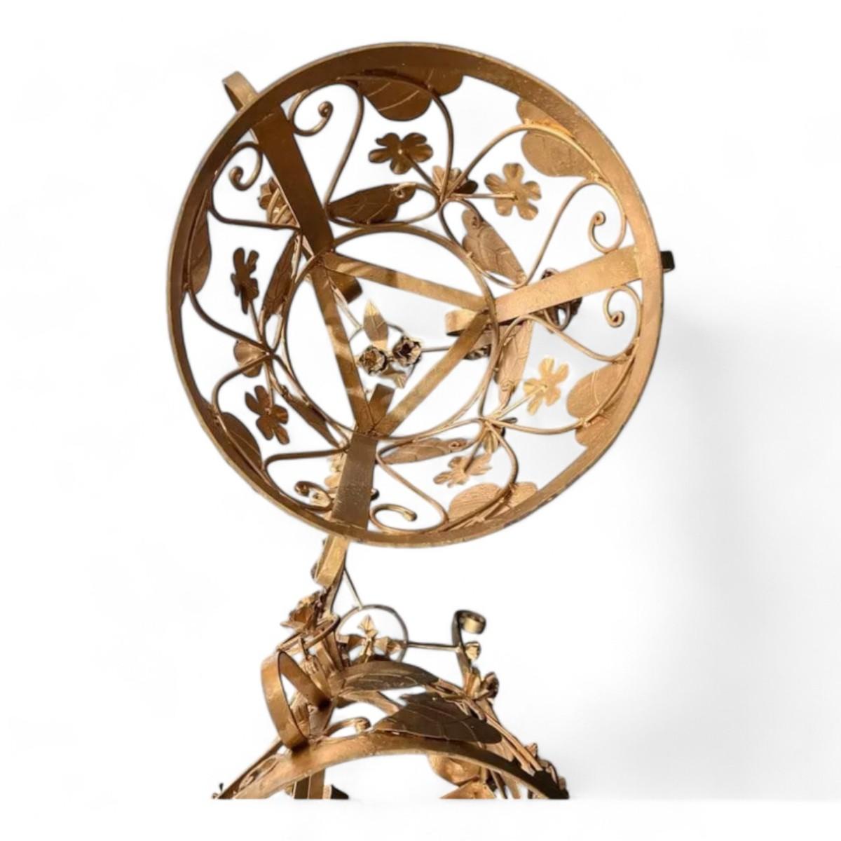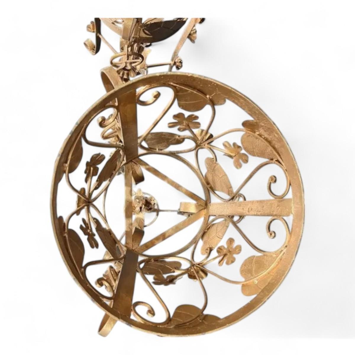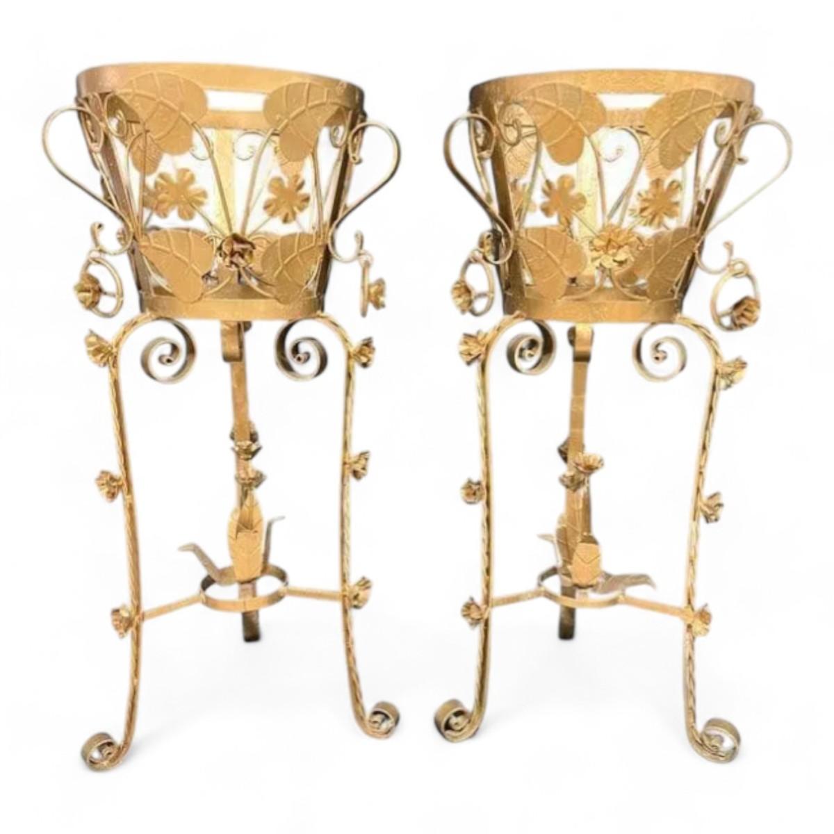 The stand is designed to elevate your favorite flowers or plants allowing them to be showcased beautifully. Its sturdy construction ensures stability and durability while the artistic design brings a touch of vintage charm to your garden patio or indoor space. The combination of wrought iron and tole details highlights the craftsmanship of the period making this piece a unique and eye-catching addition to any decor. Perfect for garden enthusiasts and collectors of vintage French art this planter pot flower stand adds a touch of timeless beauty and sophistication to your home.