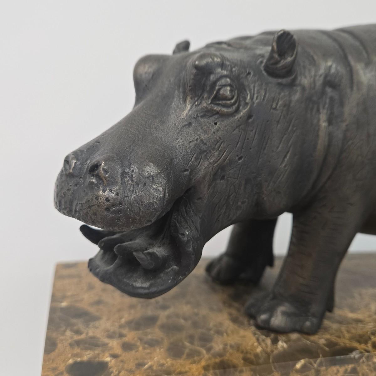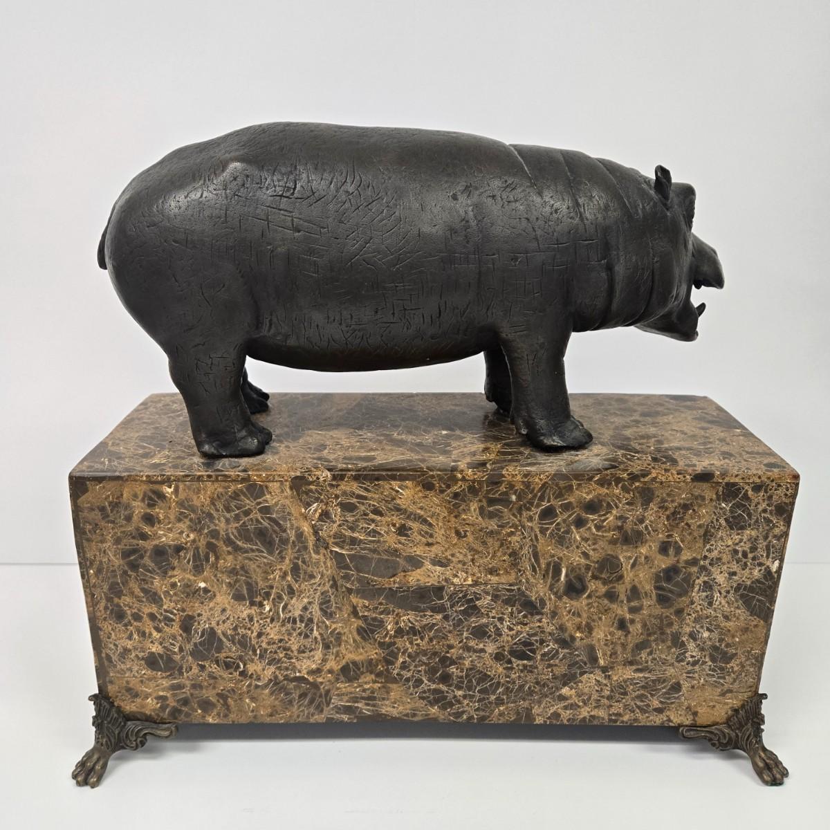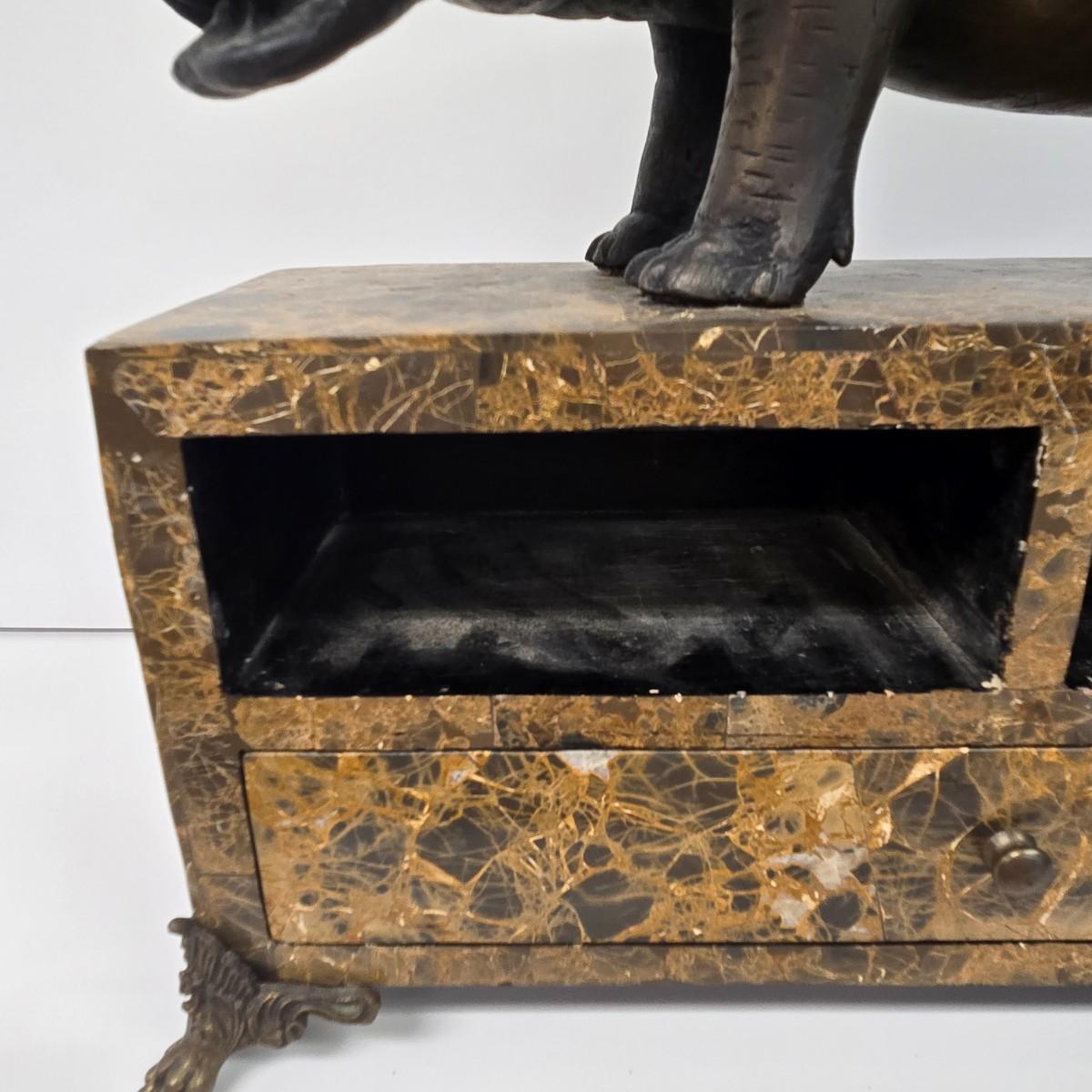 RARE Vintage Maitland-Smith Bronze Hippopotamus Atop a Faux Marble Footed Jewelry Box / 12x12