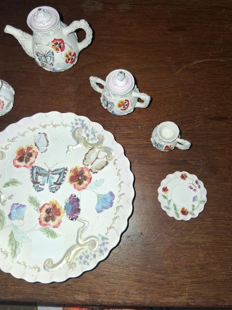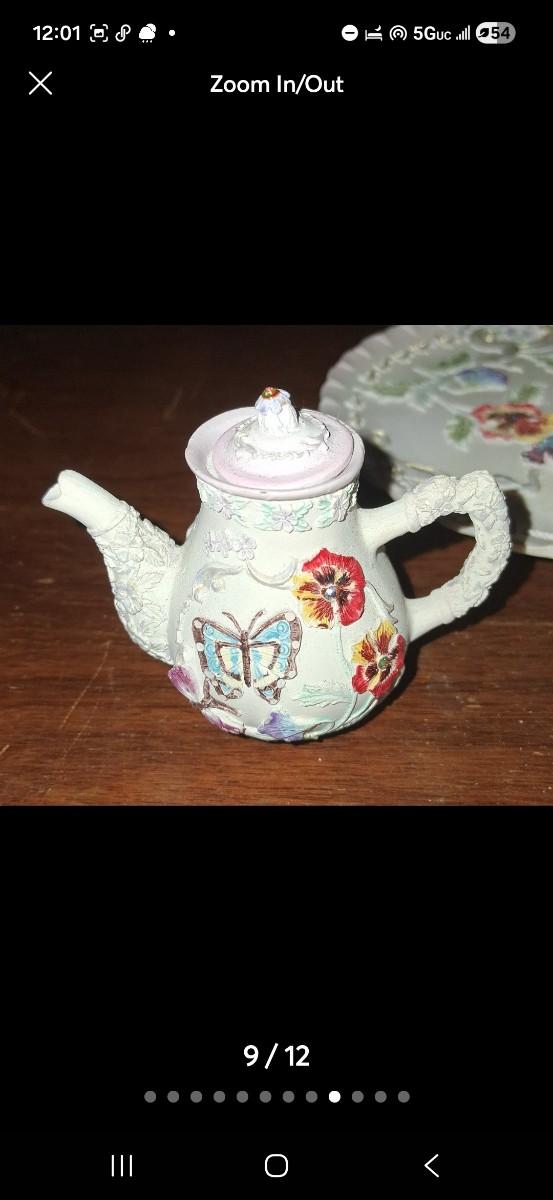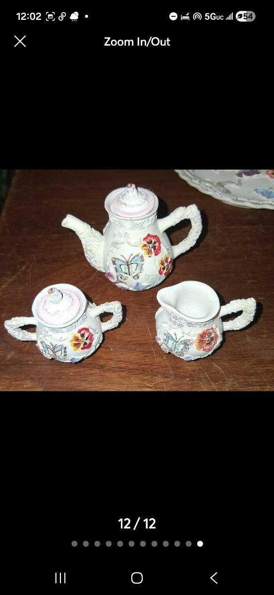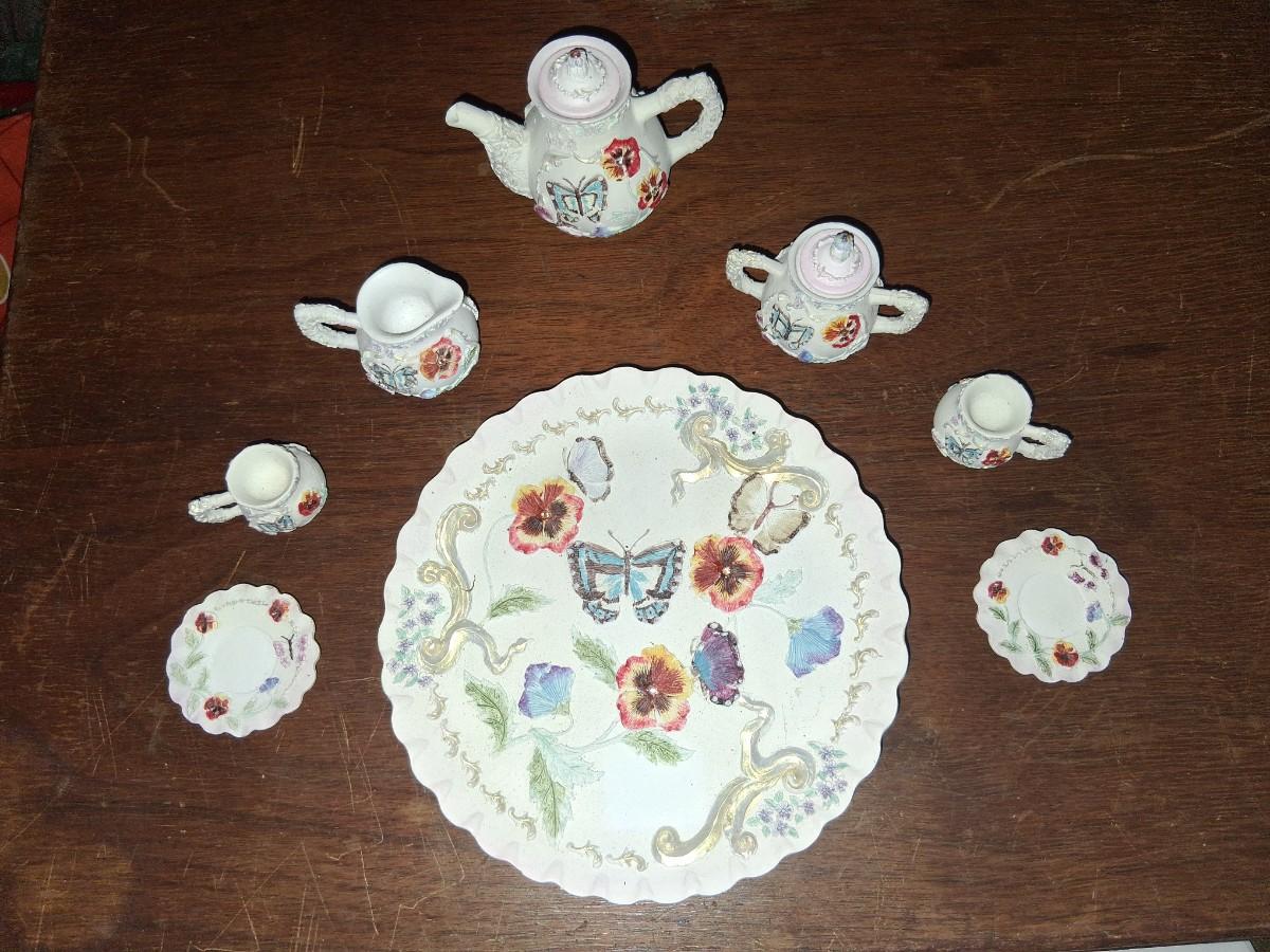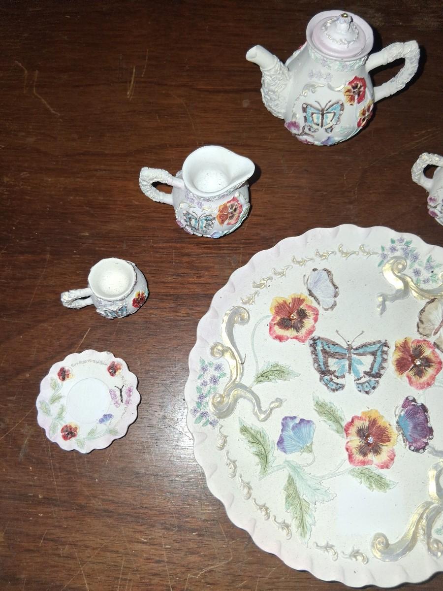 Vintage Polystone Resin Miniature Tea Set