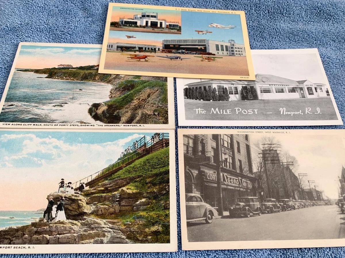Vintage Postcard Lot - Rhode Island Scenes - Airport, Mile Post Restaurant, Coastline, Street Scene