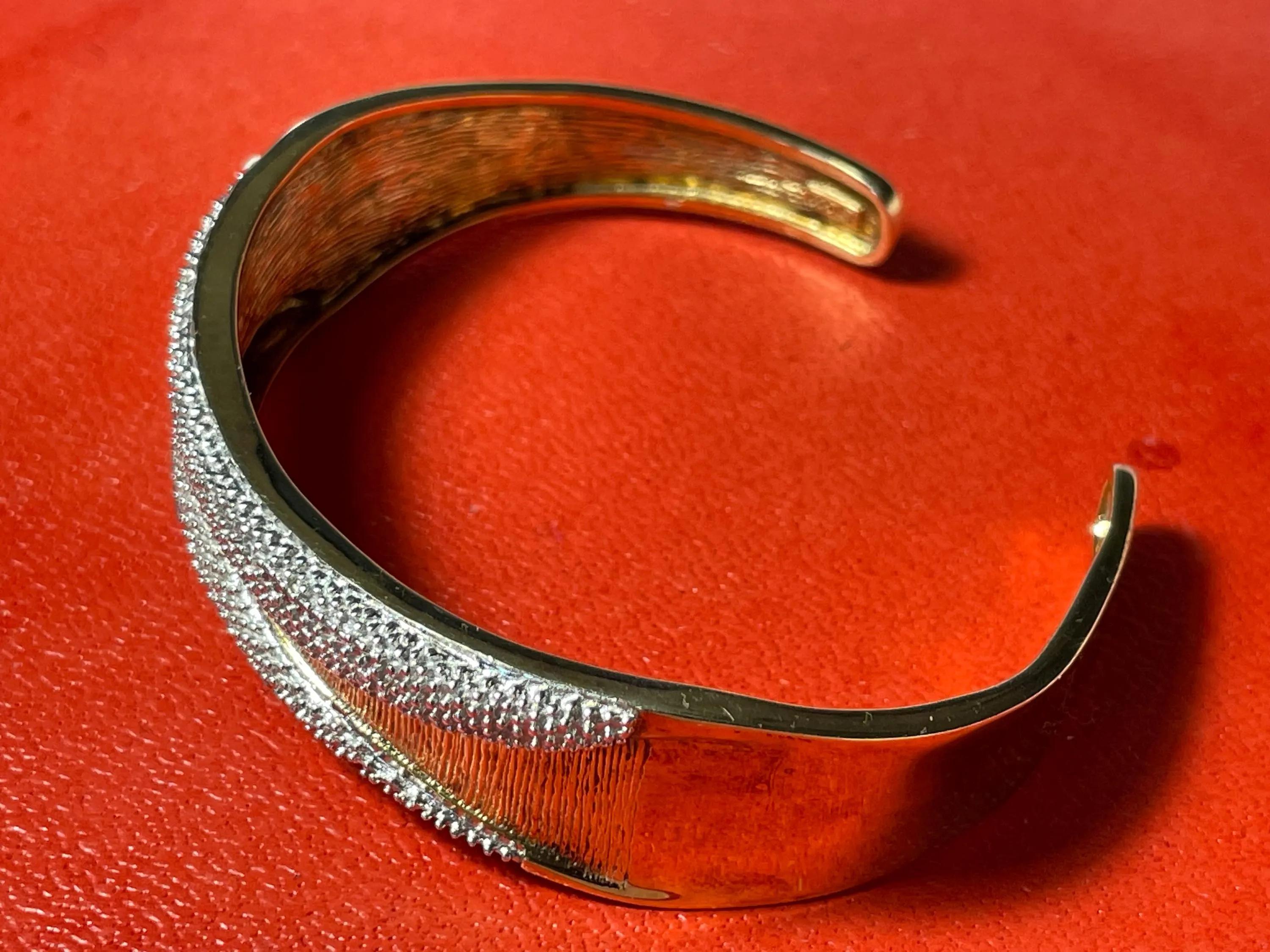 Vintage Preowned Sterling Silver 2-Tone Standard Size Cuff Bracelet 24.7 Grams TW in Good Condition as Pictured.