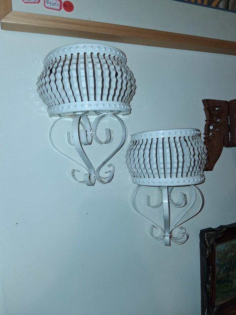 Great Condition. 2 White Wall Sconces/Pockets. Flat Bottom to set anything it. 1950s- 1980s