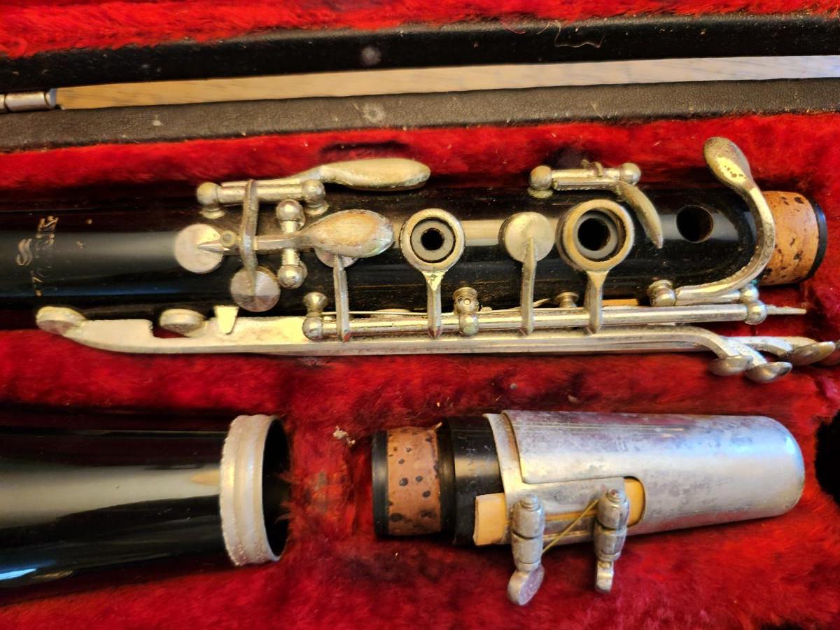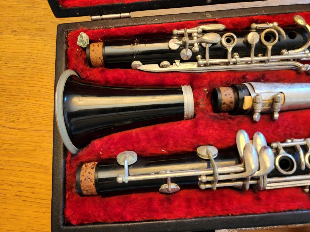 This musical offering is for a Vintage York Clarinet in Case. York Band Instrument Company - aka J.W. York & Sons has been making musical instruments in Grand Rapids, MI since 1882. Many folk really like these vintage pieces and have them cleaned, re-padded and used every day. Other folk make them into lamps or part of some art piece. Note that the case has some issues that need minor attention. Enjoy.