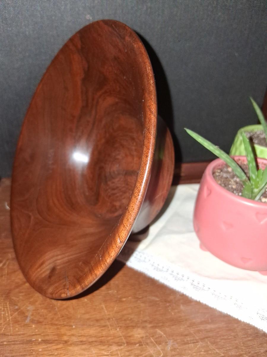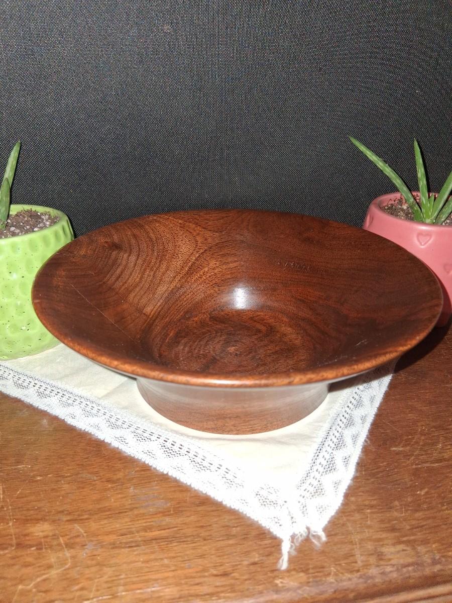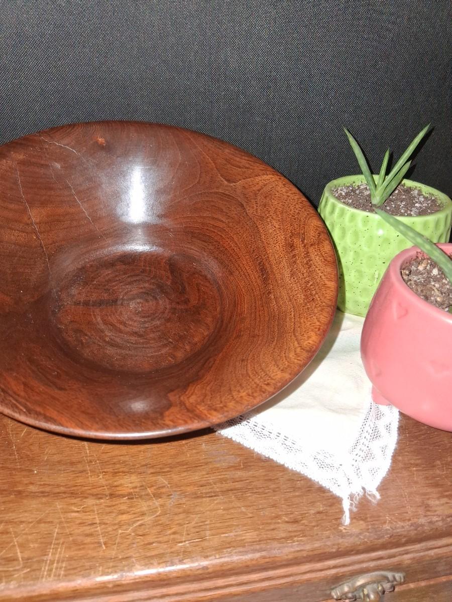 Gorgeous Nut bowl. 1980s. Small crack, as pictured. Beautiful deep color, great grain. Smooth as can be.