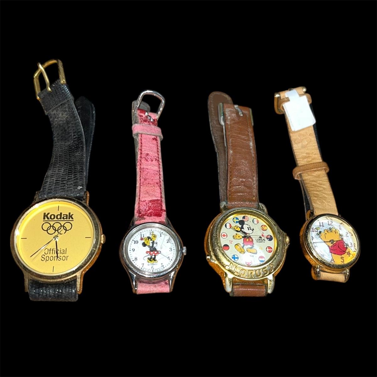 This listing is for a lot of four (4) vintage Disney, Olympics, Winnie the Pooh watches from an estate sale collection.