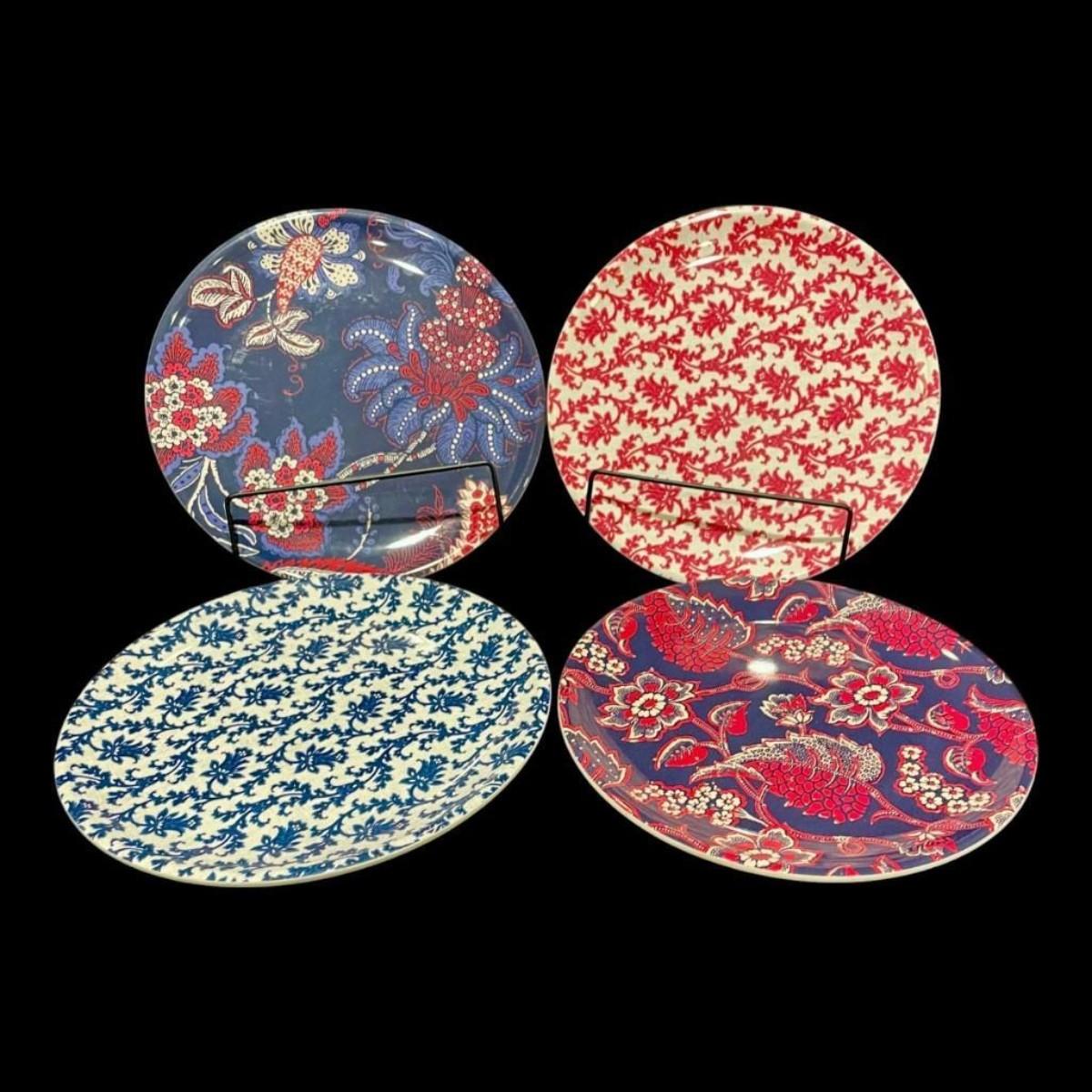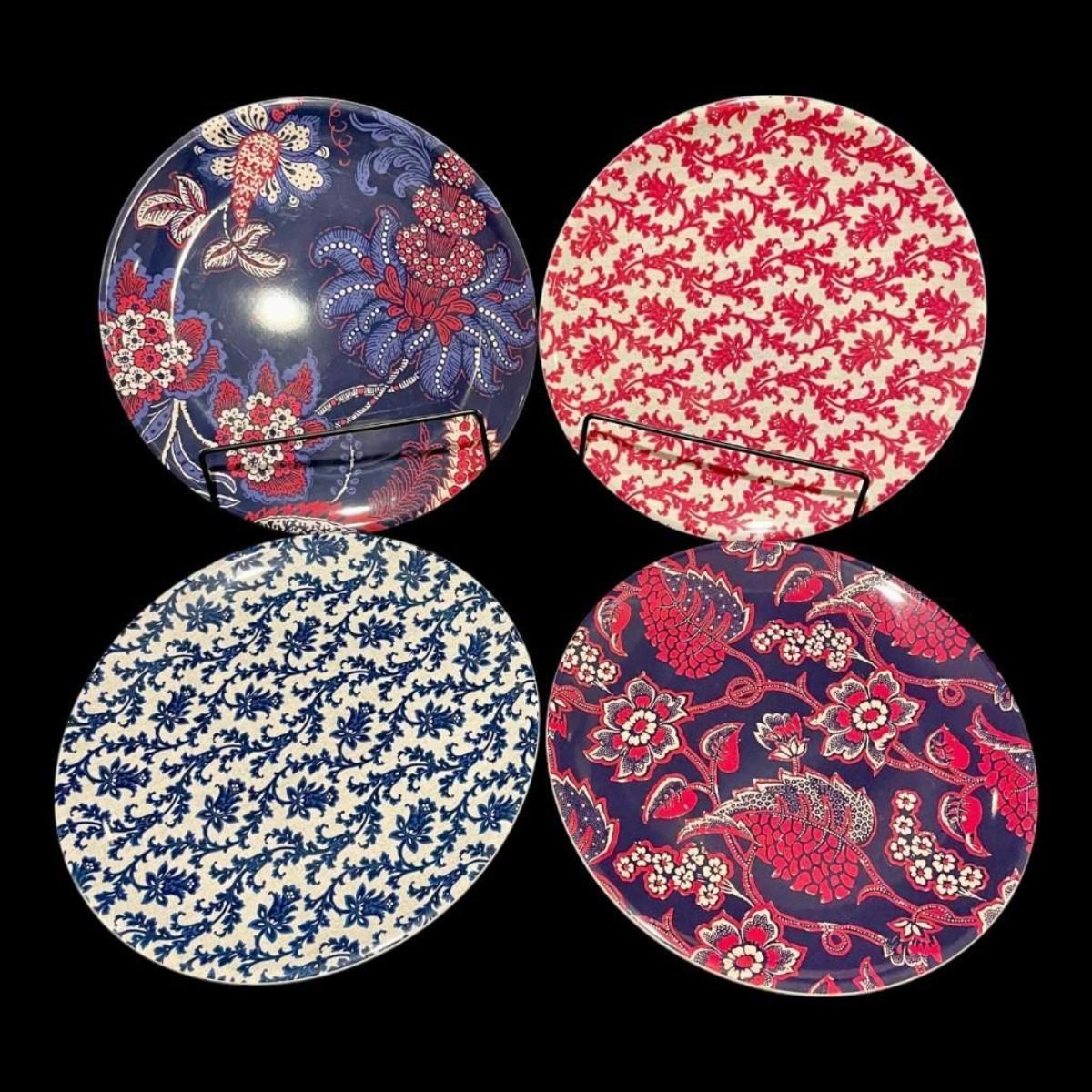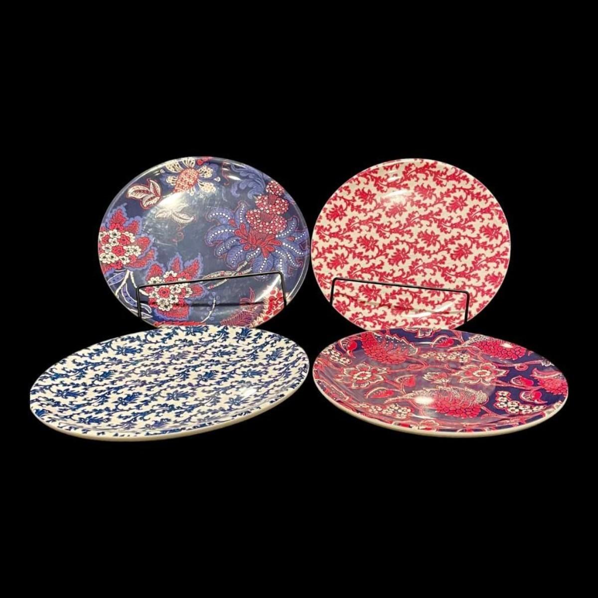 Williams Sonoma "Newport Floral" Melamine Dinner Plates Dinnerware, Set of 4, New