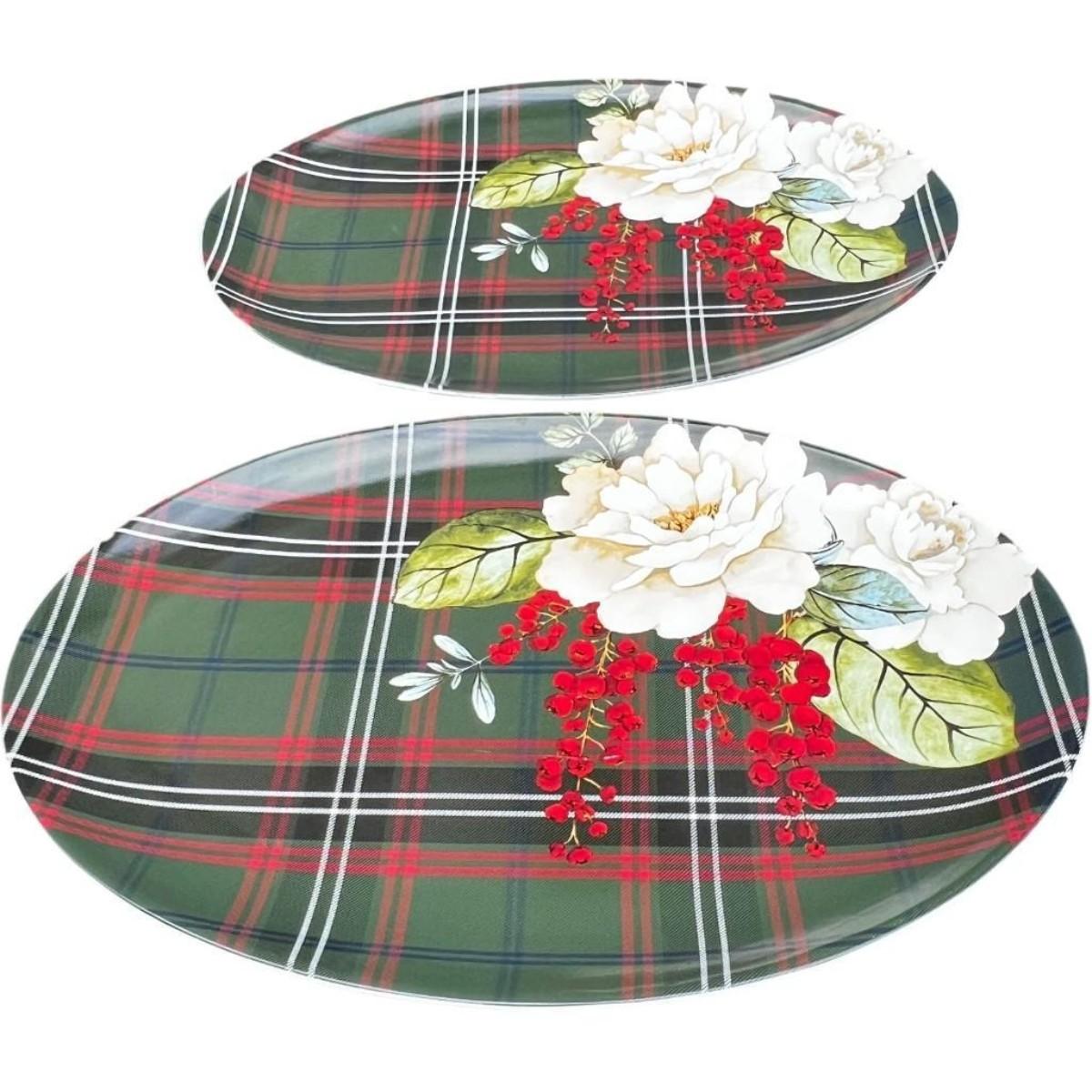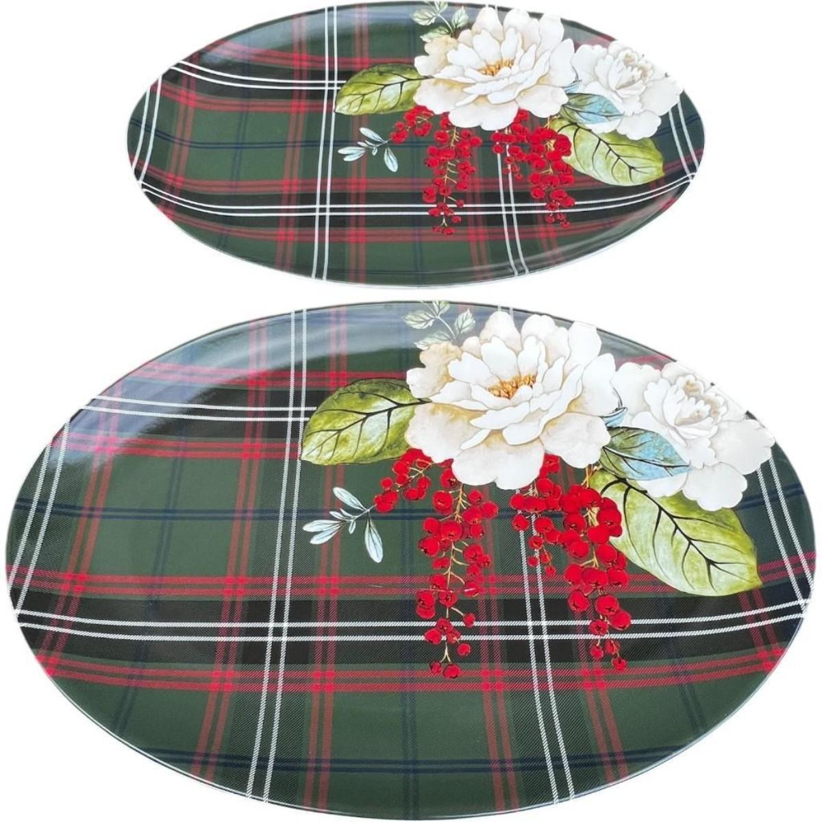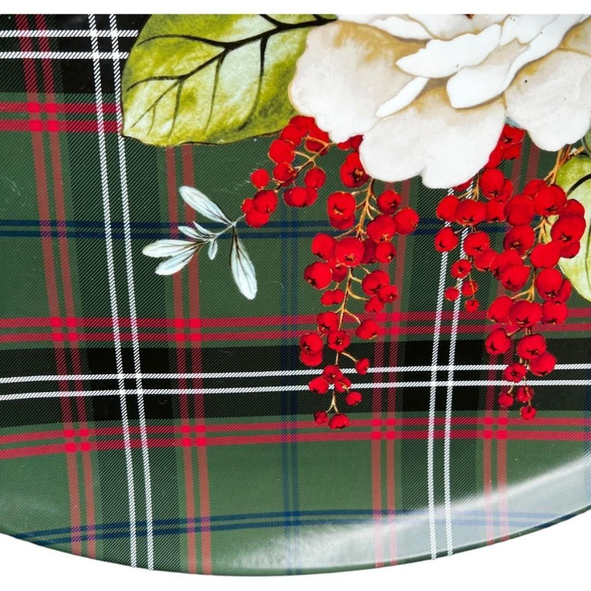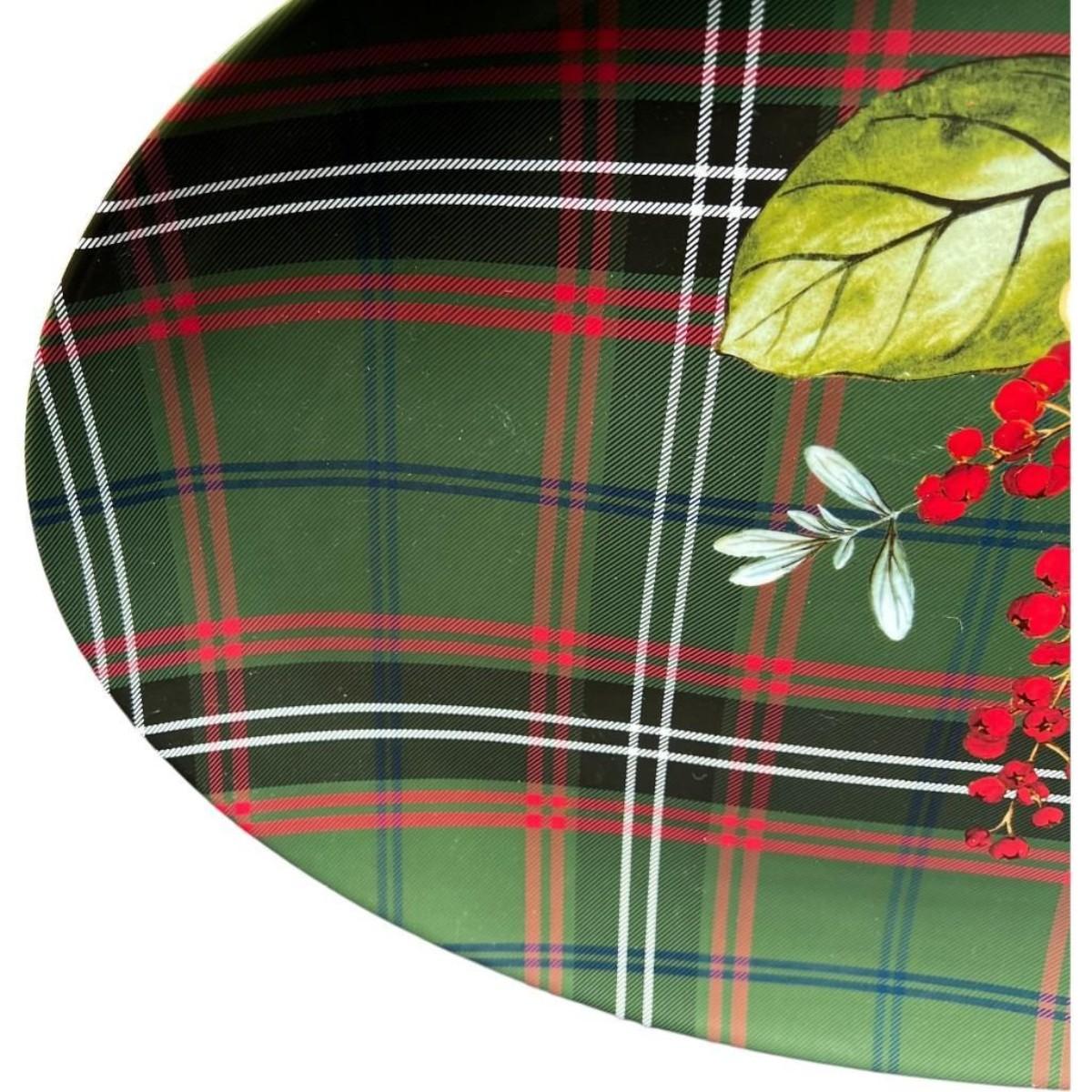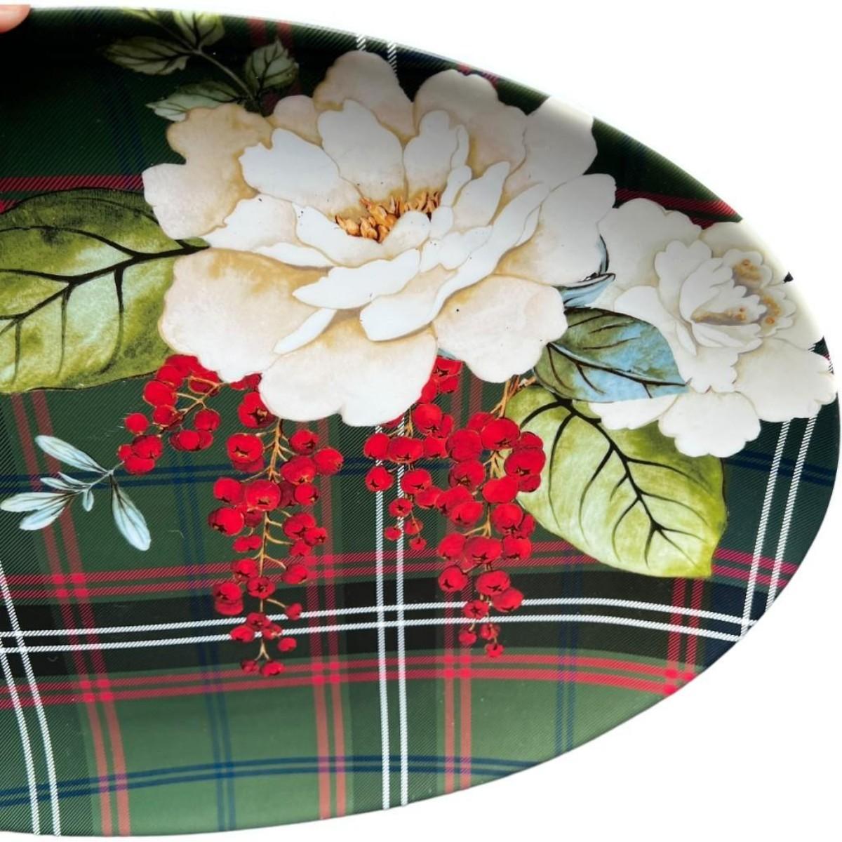 Williams Sonoma Porcelain Holiday Serving Platter ““ Magnolia & Berries with Festive Plaid Design