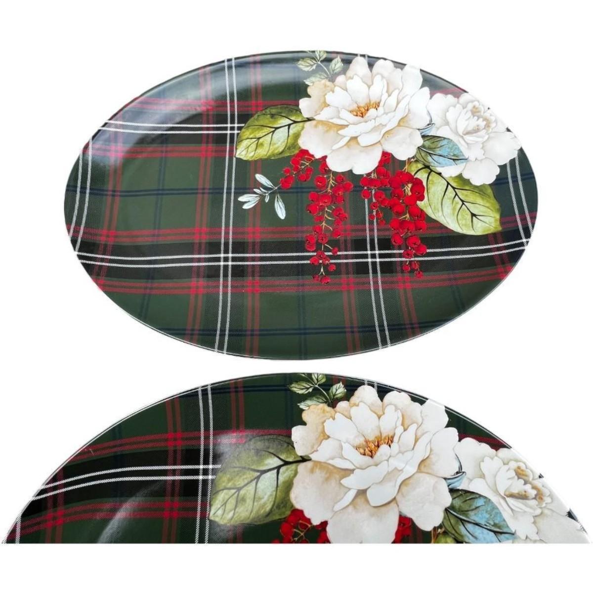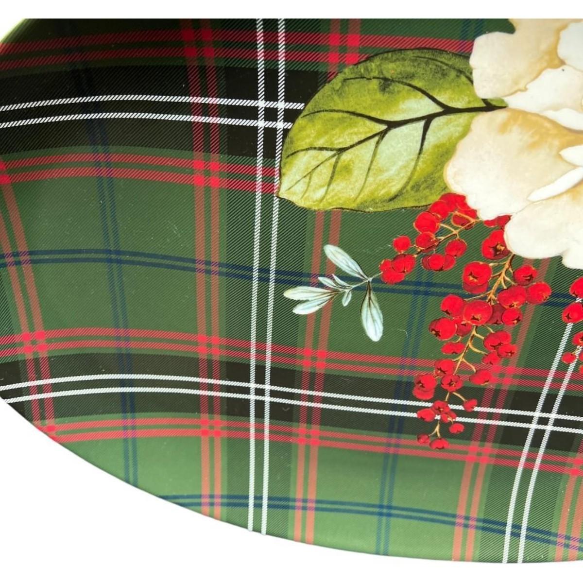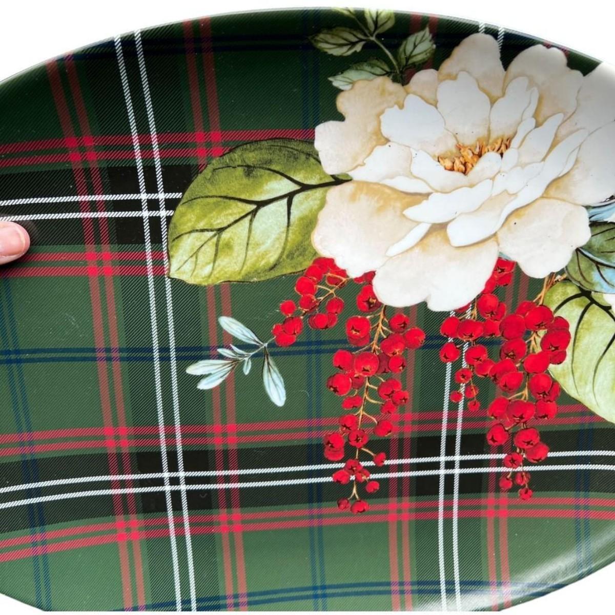 Williams Sonoma Porcelain Holiday Serving Platter ““ Magnolia & Berries with Festive Plaid Design