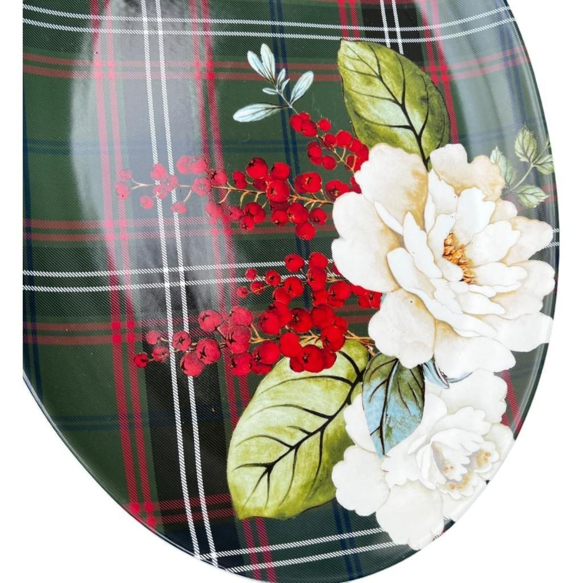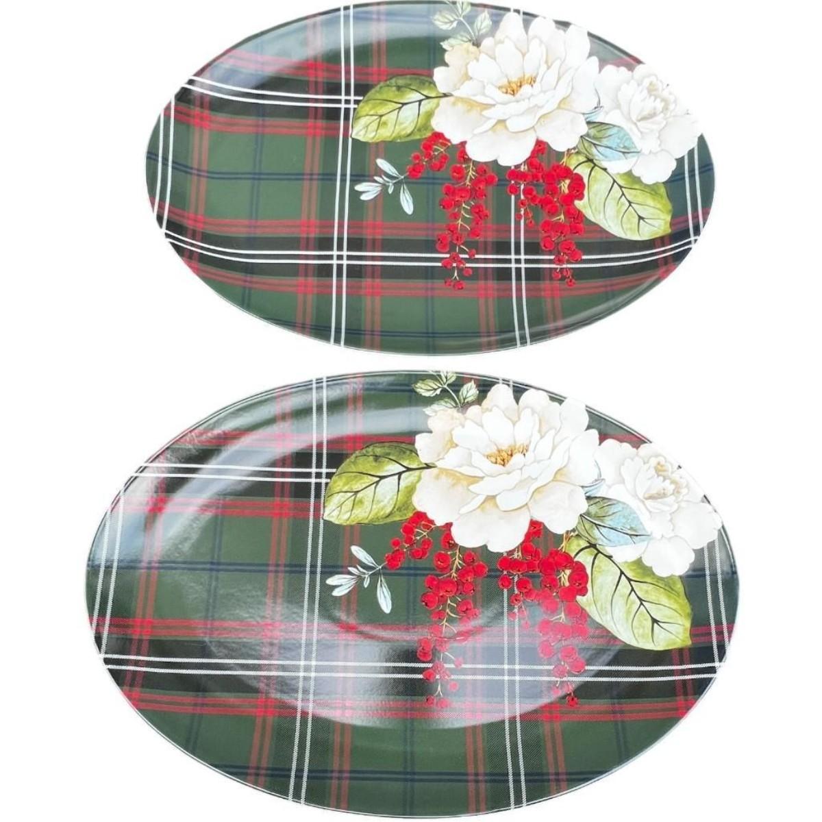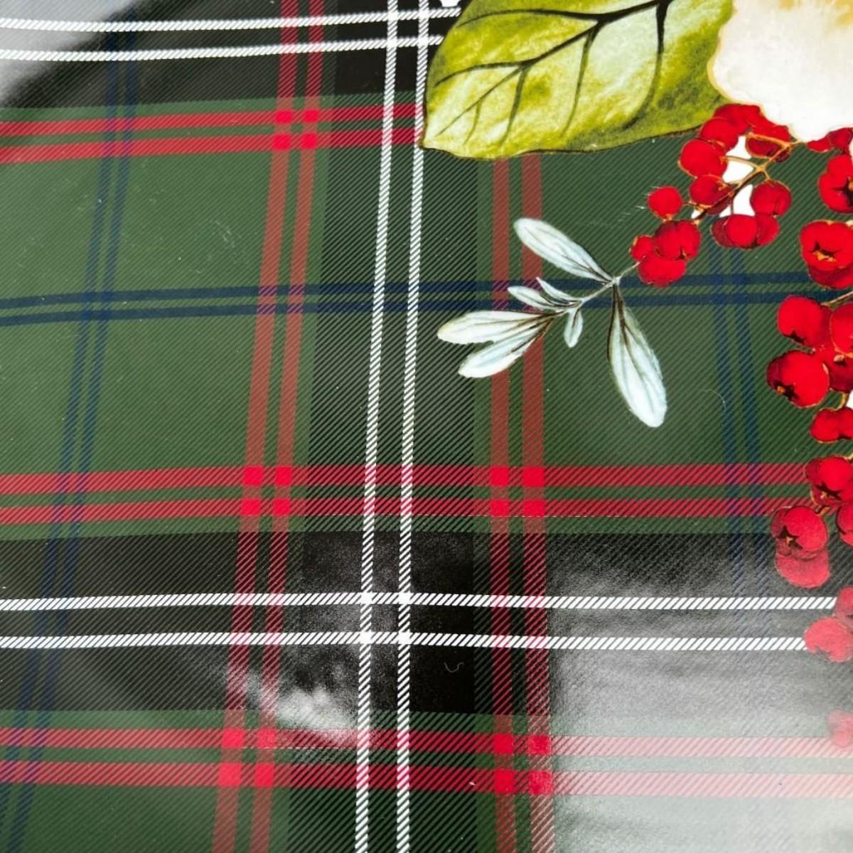 Williams Sonoma Porcelain Holiday Serving Platter ““ Magnolia & Berries with Festive Plaid Design