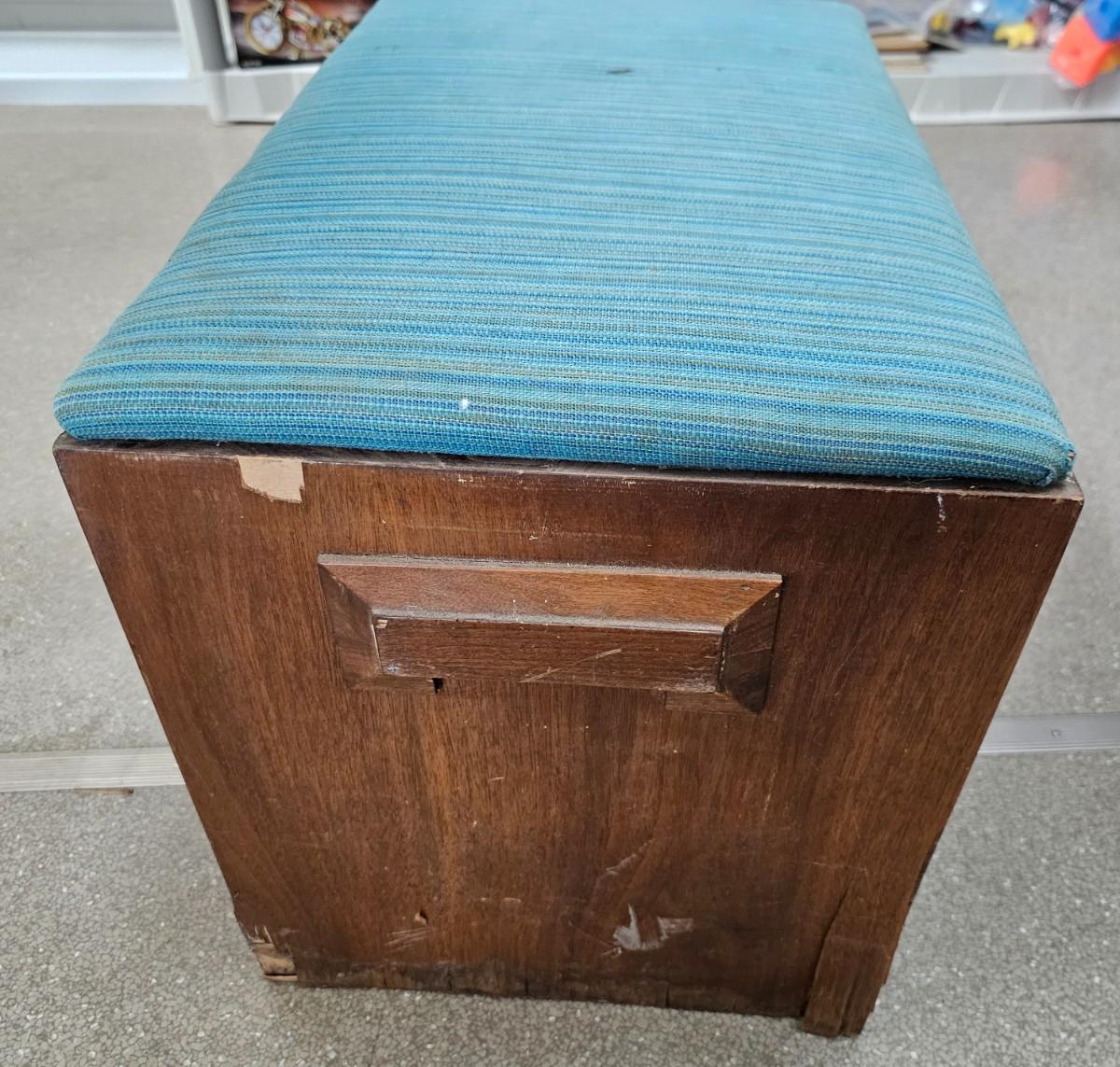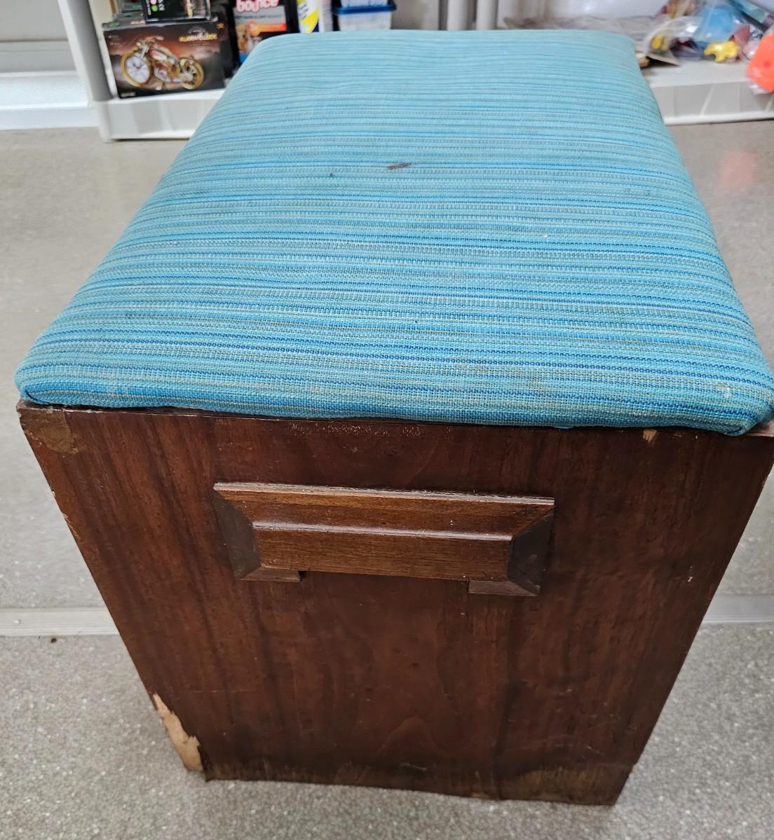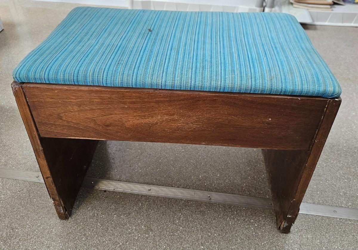 A handy stool with a comfy padded seat. 21"w x 15-1/2"h x 13"deep.