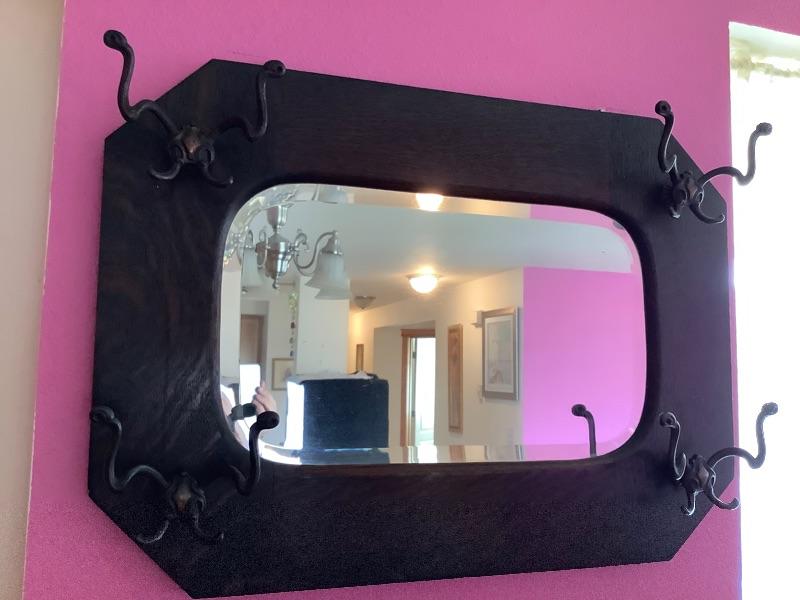 Antique Solid Wood Beveled Mirror and Hat Rack 28”x 20.25”