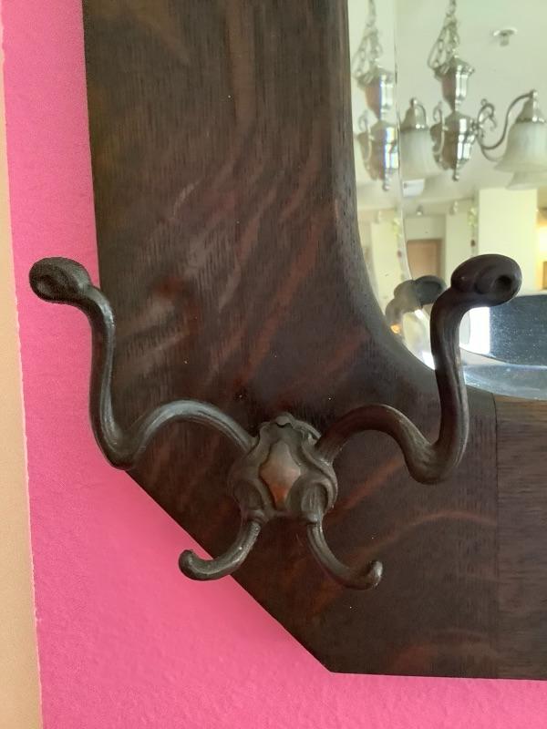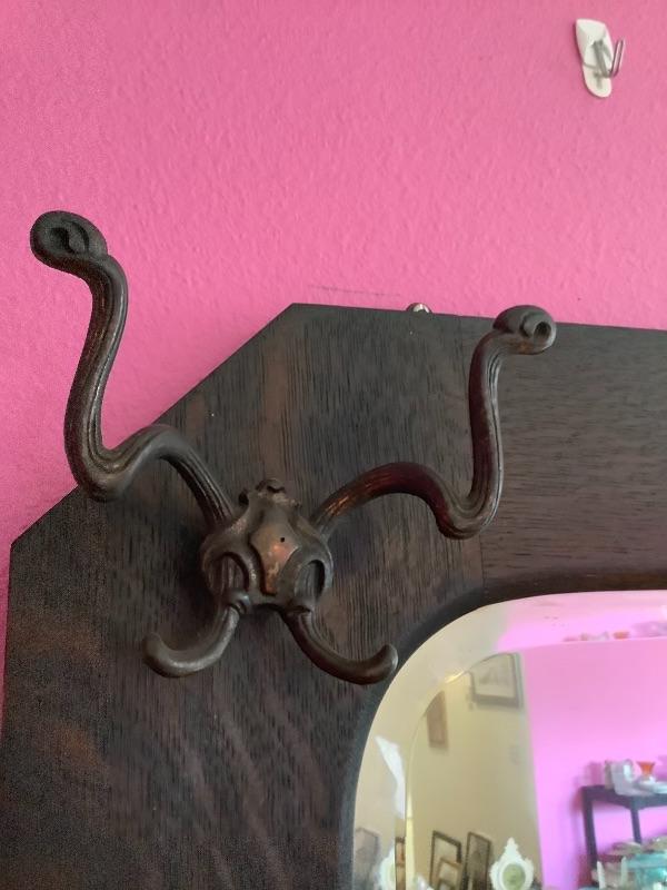 003: Antique Solid Wood Beveled Mirror and Hat Rack
