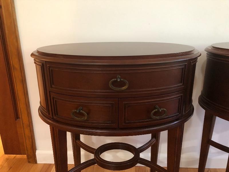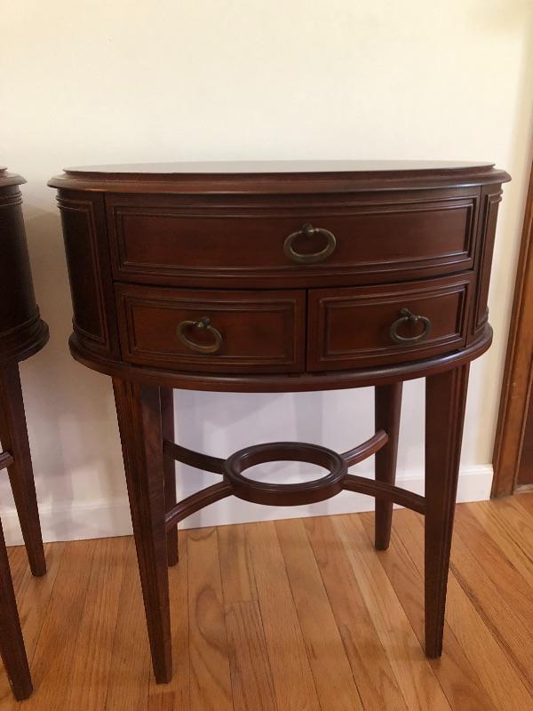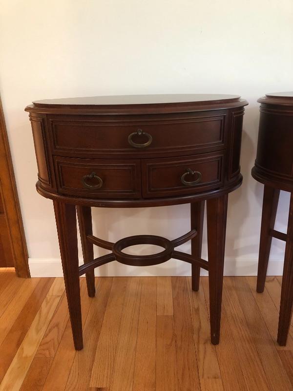 Bombay Nightstands, appear to be solid wood. 27 inches Tall x 15.5 D x 21.5 W