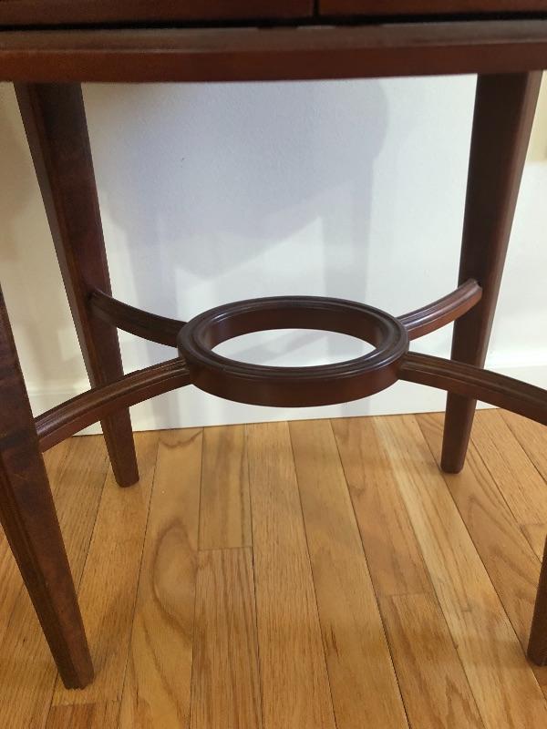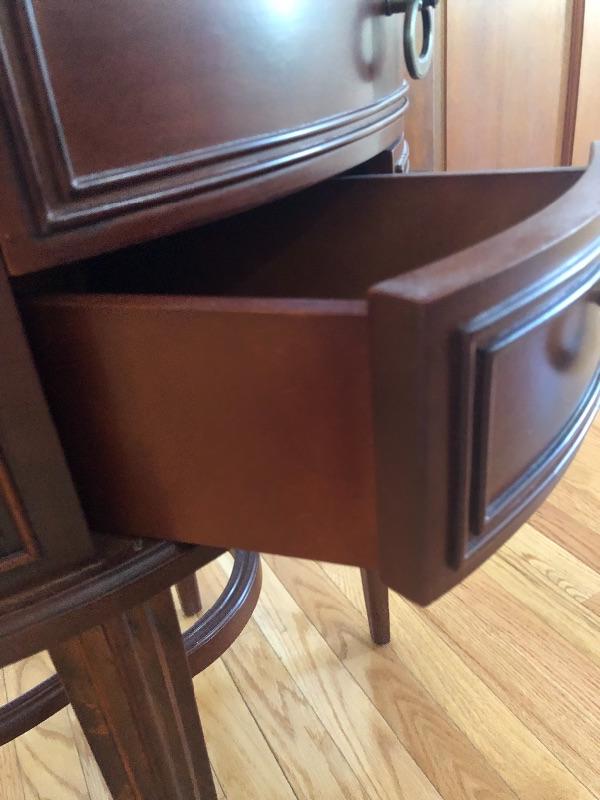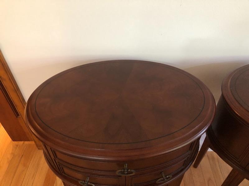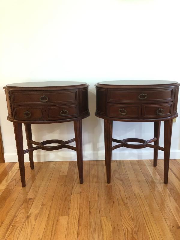 One table is a little wobbly, just needs to adjusted, otherwise the tables are in great condition. Metal Pulls