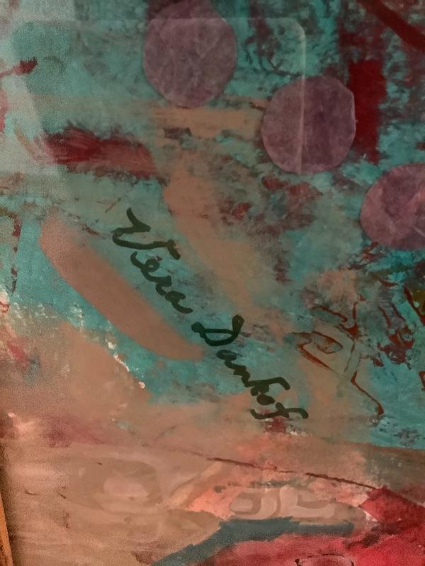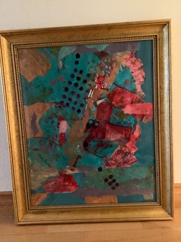 Art by Vera Dankof “Polkadot Collage” nicely framed 48” x 23.5”
