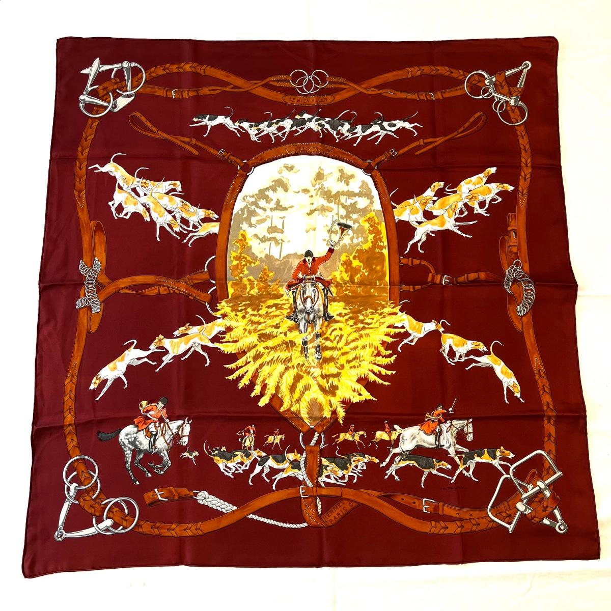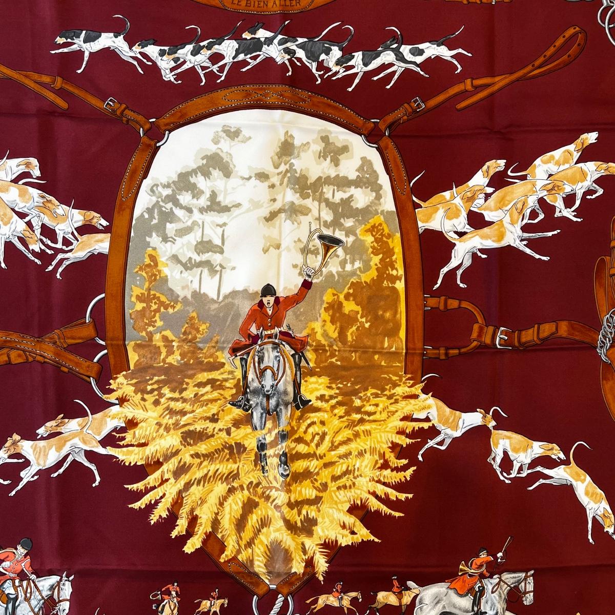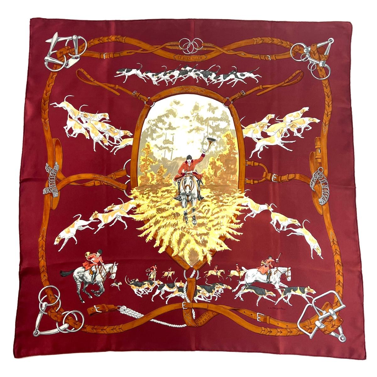 006 Authentic HERMÈS Carre 90 Silk Scarf Equestrian Le Bien Aller by Jean De Fougerolle 1979