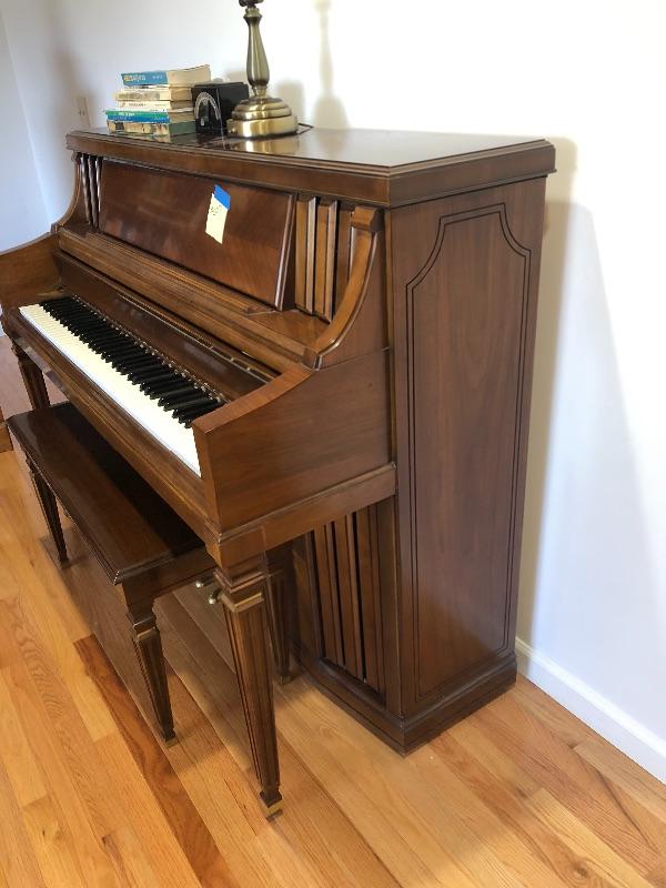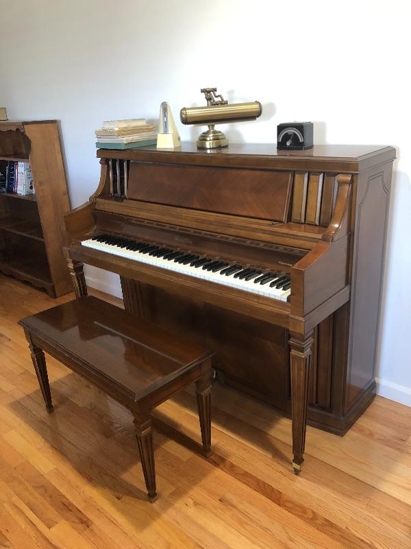 This particular piano is in excellent condition. It measures 57.5 W x 45.5 T x 25 D The bench measures 33.5 W x 19 T x 15 D
