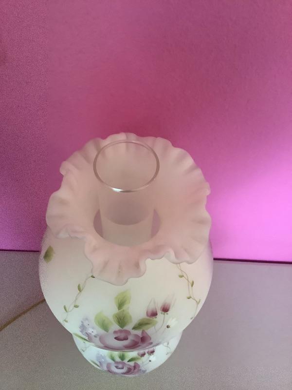009:  Fenton Hand Painted Glass Hurricane  Lamp