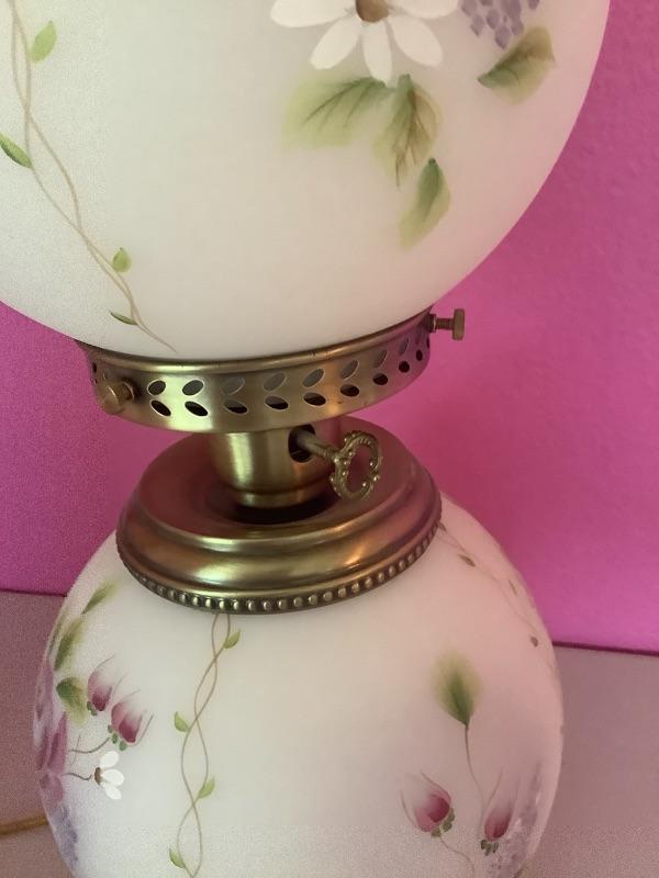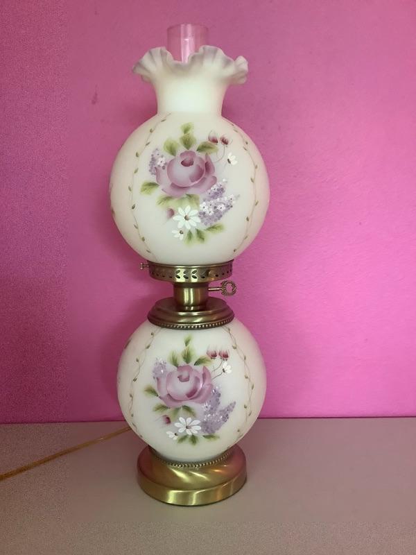 009: Fenton Hand Painted Glass Hurricane Lamp