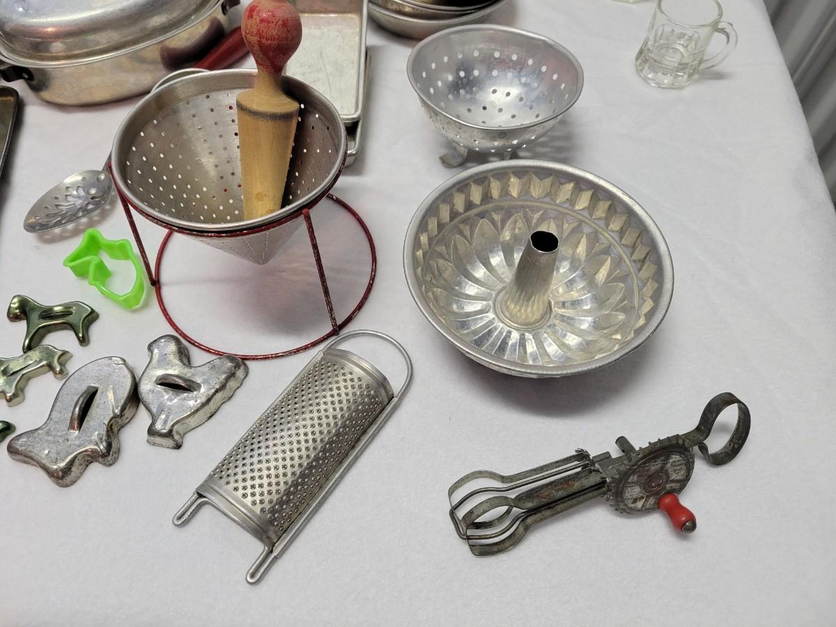 Vintage bakeware: muffin molds, pie & cake molds, cookie cutters. Vintage pots, Blue Bedroom Set